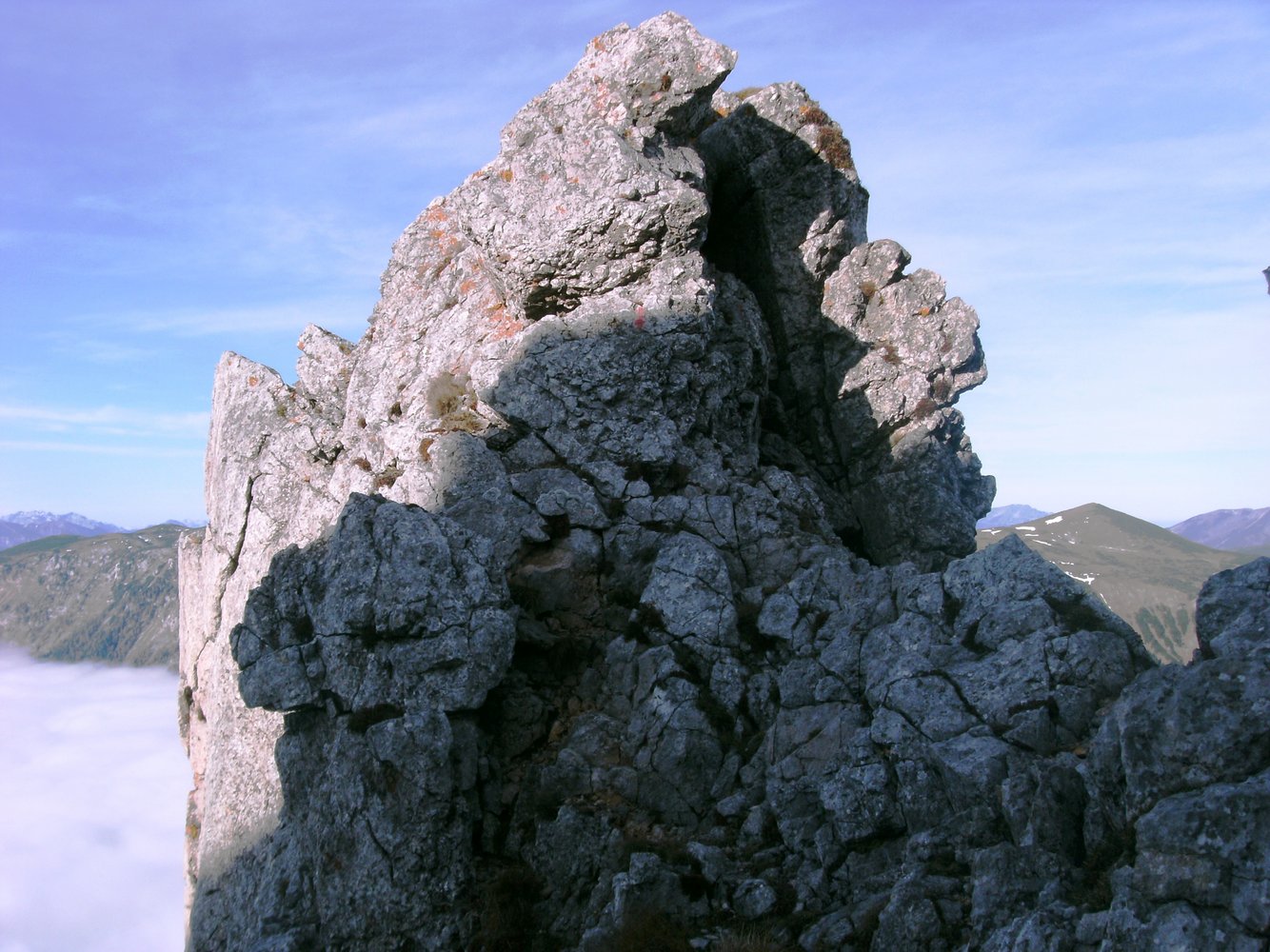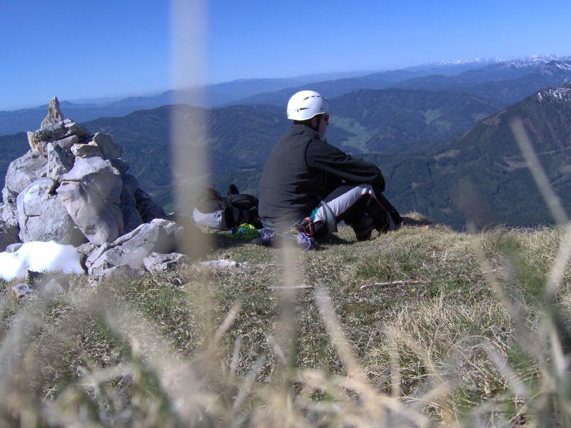 Dieser Gratanstieg ist eine der schönsten Möglichkeiten, um kletternd auf die Heukuppe zu gelangen. In ruhiger und zu unrecht selten besuchter Landschaft, ist das Klettererlebnis fast doppelt so schön. Die Route verläuft meist im Bereich des Grates und hat nur 3 Stellen die den ersten Schwierigkeitsgrad überschreiten. Der Anstieg ist durchgehend rot markiert und hat nach der Schlüsselstelle sogar einen Klebebohrhaken. Im Winter (wie auf den Fotos zu sehen) stellt die Route ein ernstzunehmendes, alpines Unternehmen dar und sollte nur von Leuten gemacht werden, die schon Erfahrung mit Winterklettereien haben. (Vorsicht im Winter: Lawinensituation genau berücksichtigen).
