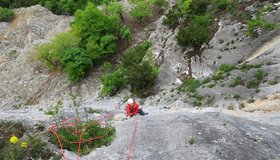 50 m Einfachseil , 11 Expressschlingen, Bandschlingen und Helm