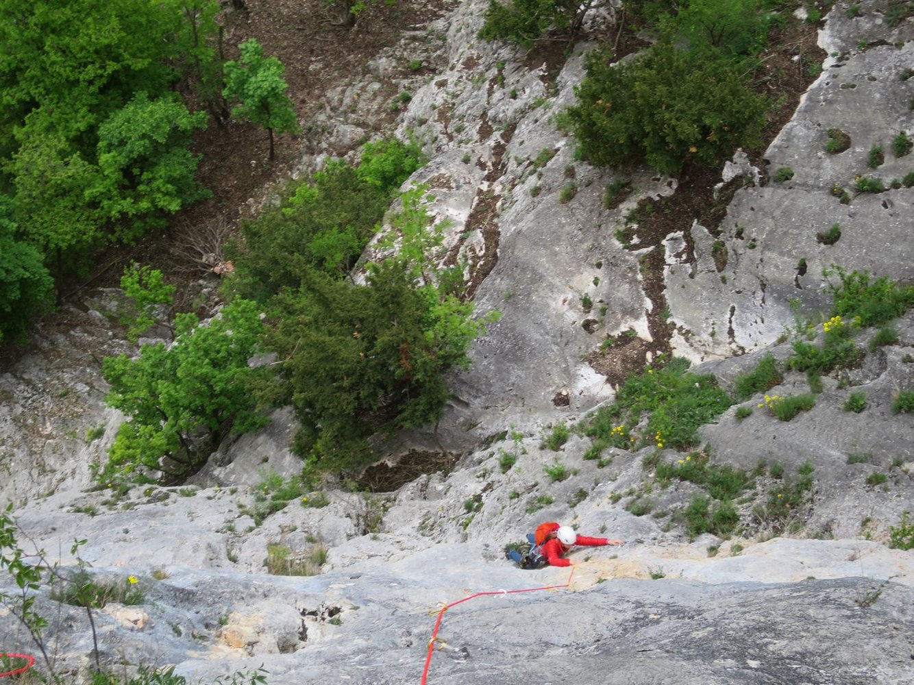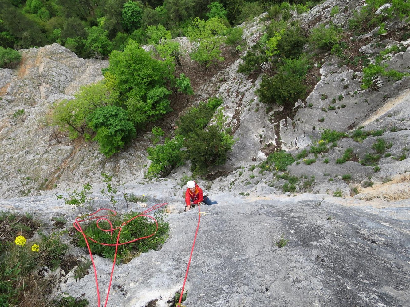 Schöne drei Seillängenroute im linken Teil der Rechten Großen Hochkogelwand. Abwechslungsreiche Kletterei die nach oben hin schwerer wird. Gute Absicherung bis auf dem 10 m Runtout zum 1. Bolt im 4ten Grad.