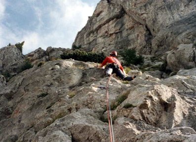 Die Route ist mit Bolts abgesichert, trotzdem muß zwischen den Haken geklettert werden. Kein Plaisir. Keile und Friends lassen sich gut legen. Kletterzeit 3-4:30 Stunden