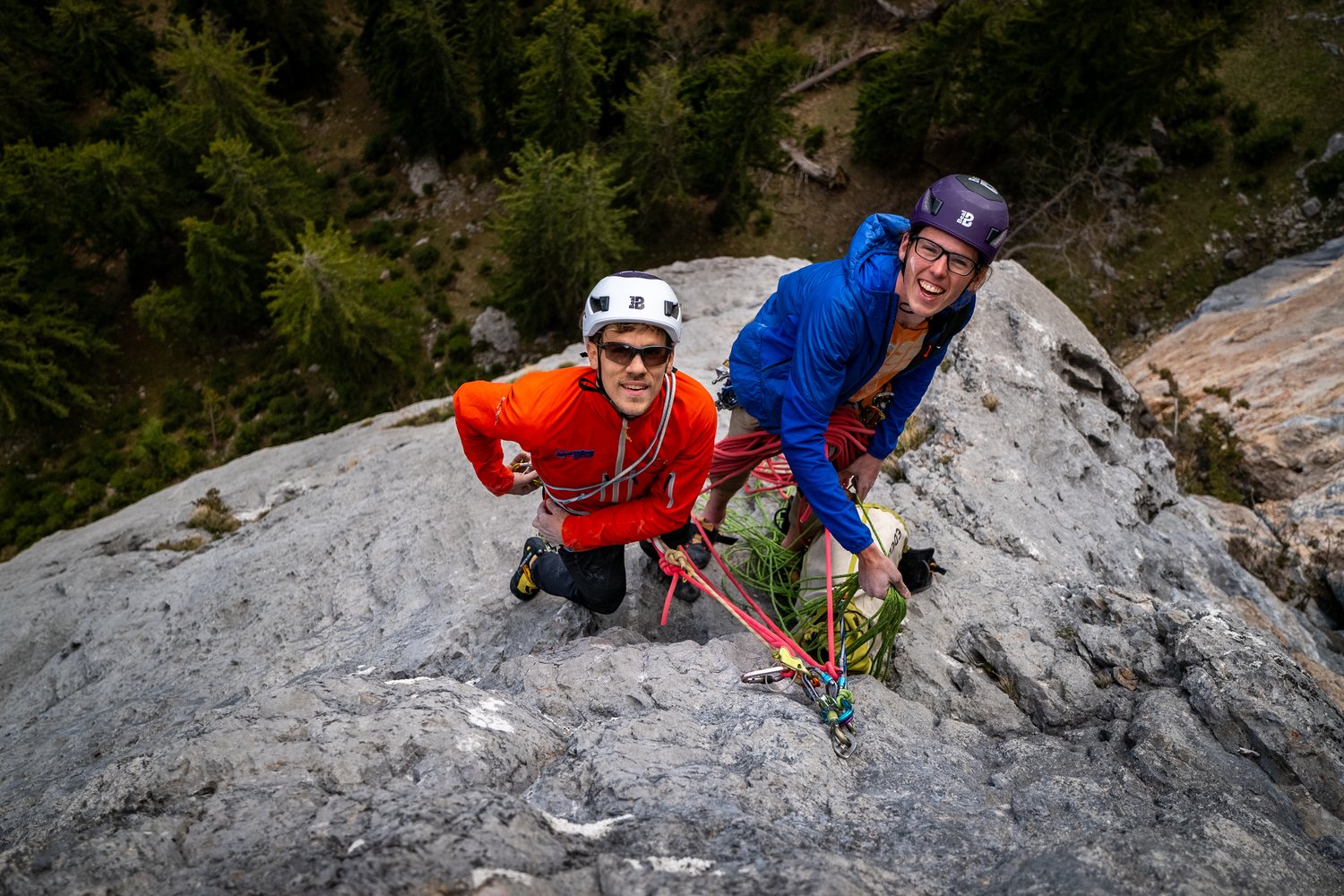 Falls man Abseilen möchte 50m Halbseile oder Einfachseil+ Rapline.