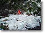 Oben rechts absteigen und bis zum Stand der 2 SL abklettern. (Vorsicht loses Gestein). Oder für Ungeübte besser über die Routen abseilen! Weiter über den Grossofenabstieg. Einfach toll und schnell (10 min.)