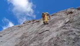 Zur Trogkofel Südwand braucht man eigentlich nicht viel sagen. Alle Touren sind außerordentlich schön, haben festen, teils wasserzerfressenen Kalk und sind sehr gut abgesichert. Die Routen sind sich vom Charakter her sehr ähnlich, sie besitzen oftmals technische Passagen und fordern eher die Beine als die Arme. 'Wintertraum' ist eine sehr gelungene Route, die mit Ausnahme der 3. Seillänge auch recht homogene Kletterei bietet. Die Schlüsselstelle ist eine Platte in der 2.Seillänge, in der man die kleinen Reibungstritte sauber ansteigen muss! An der Trogkofel Südwand kann man aufgrund ihrer 'Süd'-Exposition vom frühen Frühjahr bis in den späten Herbst klettern.