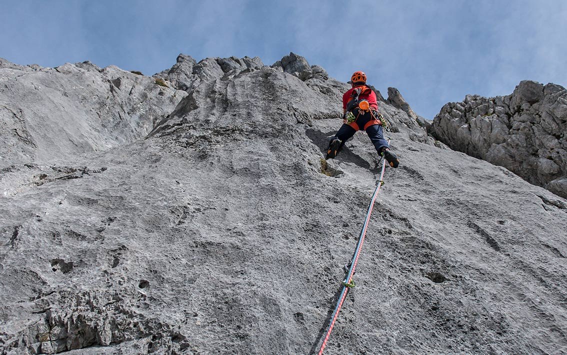 Die Tour ist mit Bohrhaken gut gesichert, teilweise aber etwas weitere Abstände. Man sollte 6/6+ aber gut beherrschen.