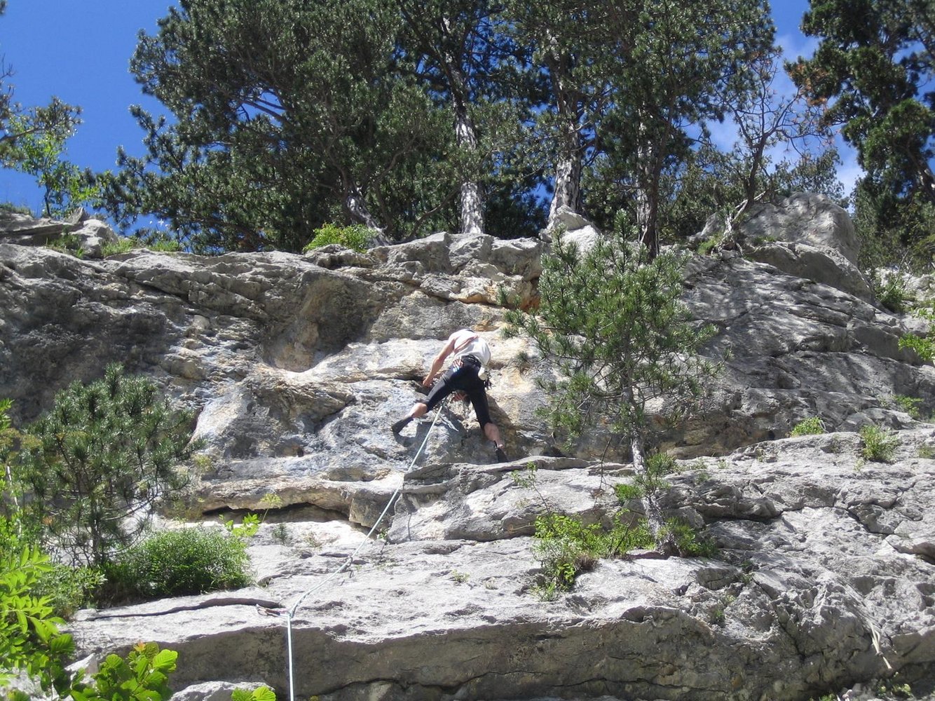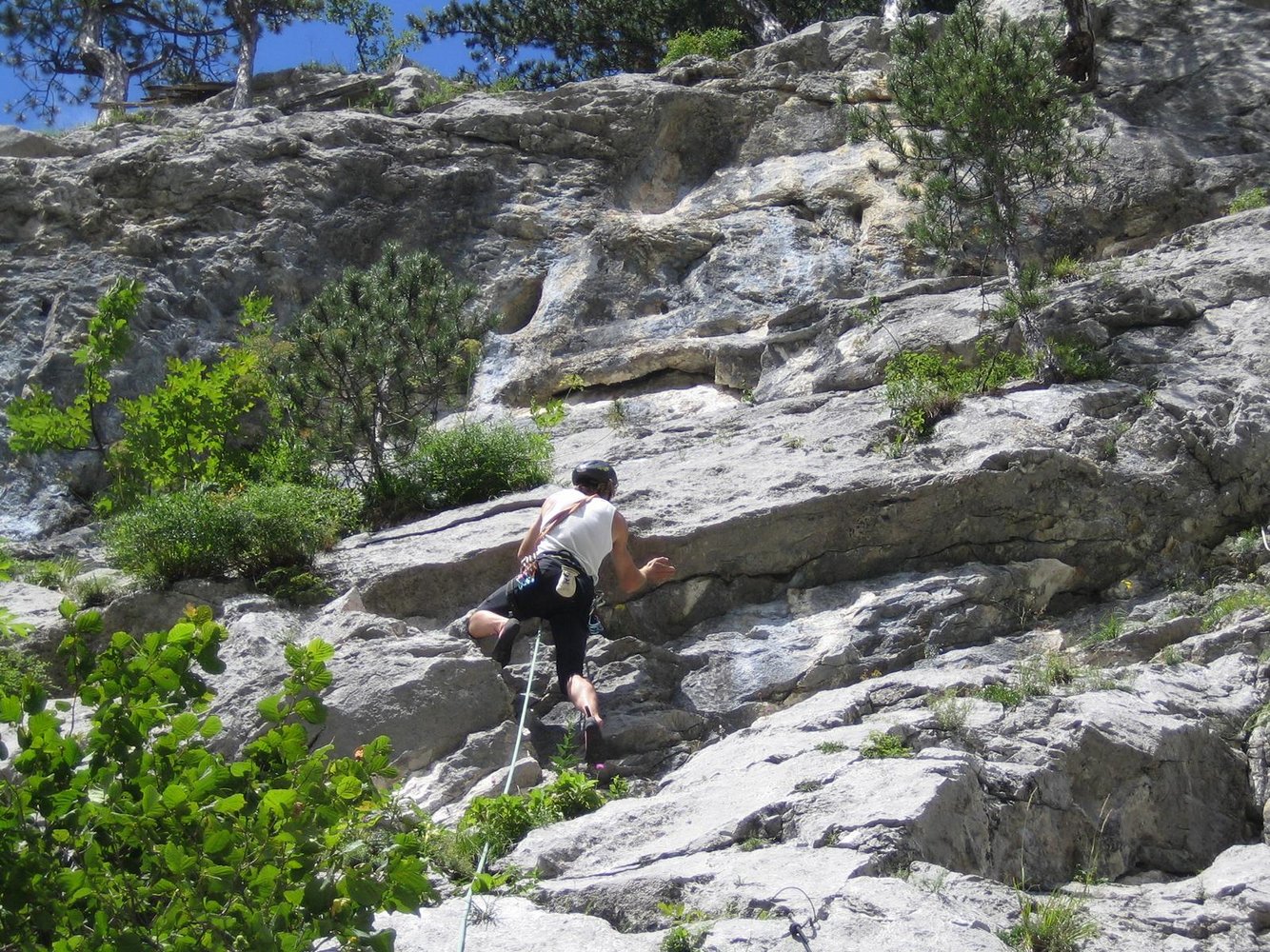 Relativ neue Genußkletterroute an der Vorderen Stadlwand. Die Route ist ganz in Th. Behm-Manier eingerichtet und ist recht hübsch geworden. Im unteren Teil eine etwas kraftvolle Stelle. In der Mitte leider etwas schroffig, dafür sind die letzten zwei Seillängen von super Qualität. Die Route ist mit Bohrhaken und Klebebohrhaken gut abgesichert und man kann sogar über die Tour abseilen.