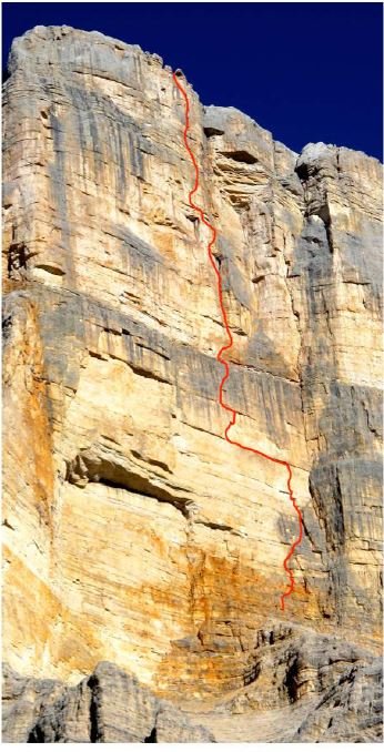 An sechs Tagen im Sommer 2013 gelang es den beiden diese unglaubliche Linie zu eröffnen. Abgesichert wurde ausschließlich traditionell mit Schlaghaken und mobilen Sicherungen, wie es am Heiligkreuzkofel üblich ist. Die Route verläuft in der Hauptwand am rechten Pfeiler zwischen der Mutschlecher - Großrubatscher Gedächtnisführe und der Mayerl - Verschneidung.