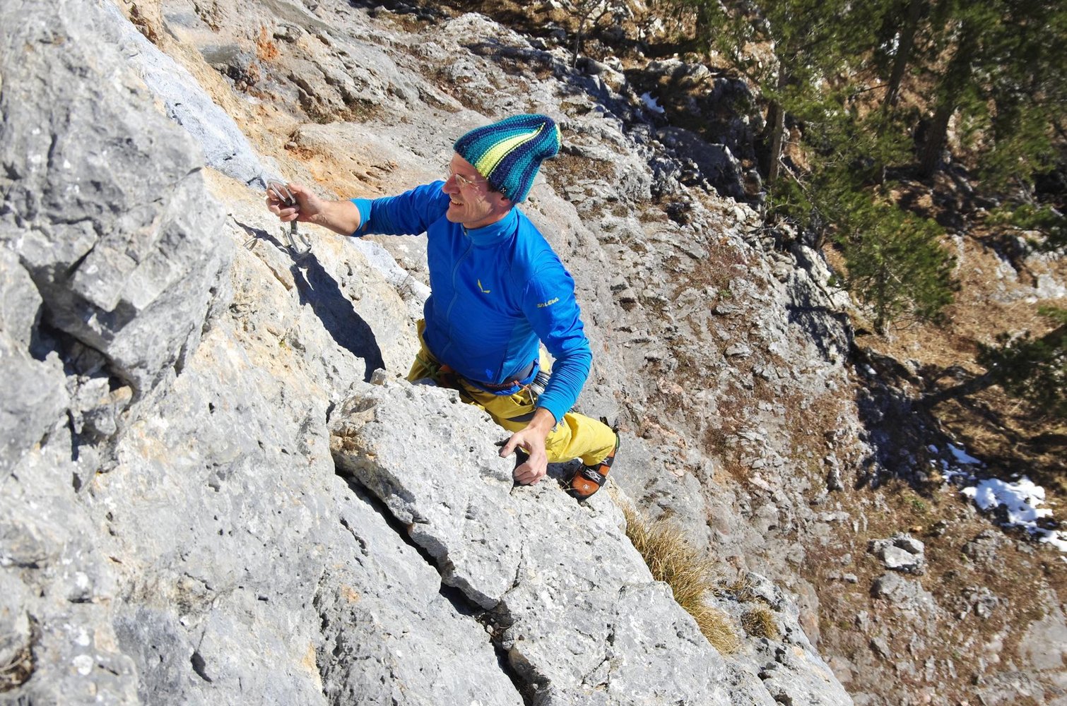 Zwar nicht besonders lang, aber dennoch einer der besten Hohe Wand 4er. Die Route wurde von den Bergführern der Alpinschule Peilstein 2009 saniert und ist sehr gut mit Klebehaken abgesichert. Perfekte Tour für Inversionswetterlagen im Herbst. Wenn unten der Schnee und Hochnebel ruht, klettert man hier oben im T-Shirt. Im Sommer daher sehr heiß, außer der Südwind bläst. :-)