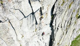 Die Route wurde teilweise mit Bohrhaken und Normalhaken eingerichtet. An Stellen, wo die Absicherung mit Friends möglich ist, wurde kein Bohrhaken gesetzt. Weite und gefährliche Runouts gibt es nicht.