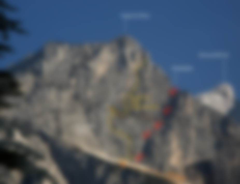 Achja: Die Seillängen 4 und 5 verlaufen auf unserem Topo auf der benachbarten Spominska Smer Ceneta Kramarja. Macht keinen rgoßen Unterschied, wird aber trotzdem sobald als möglich ausgetauscht.