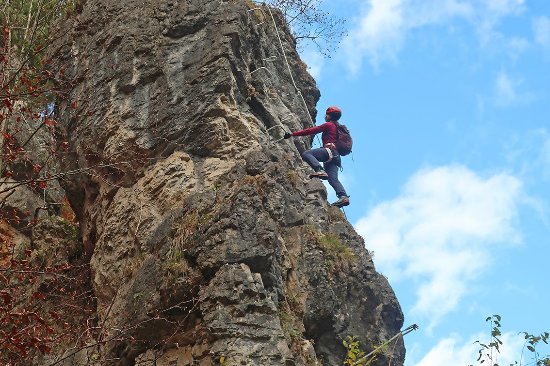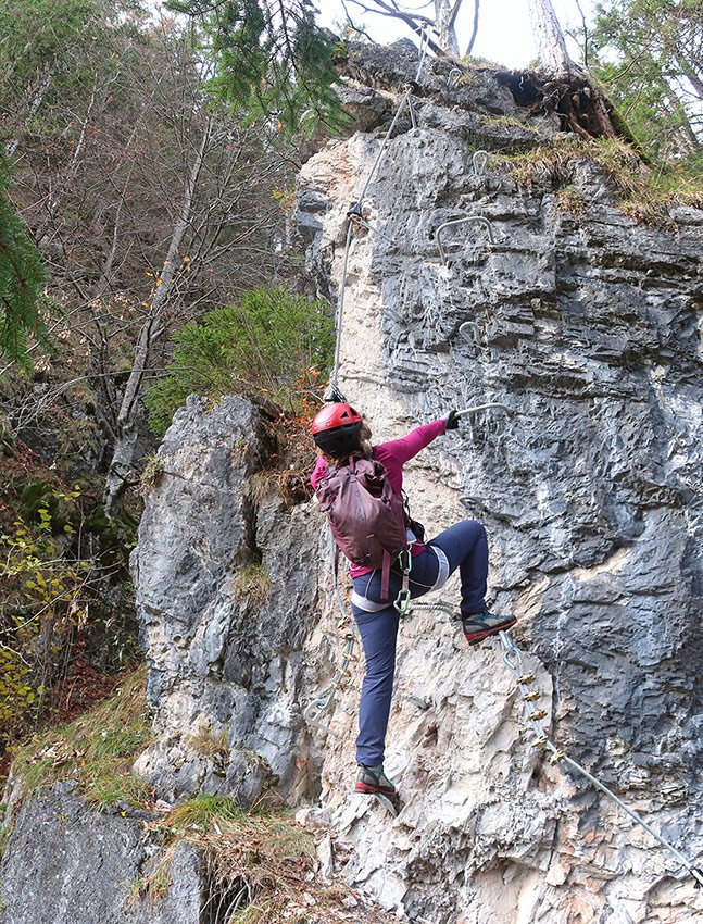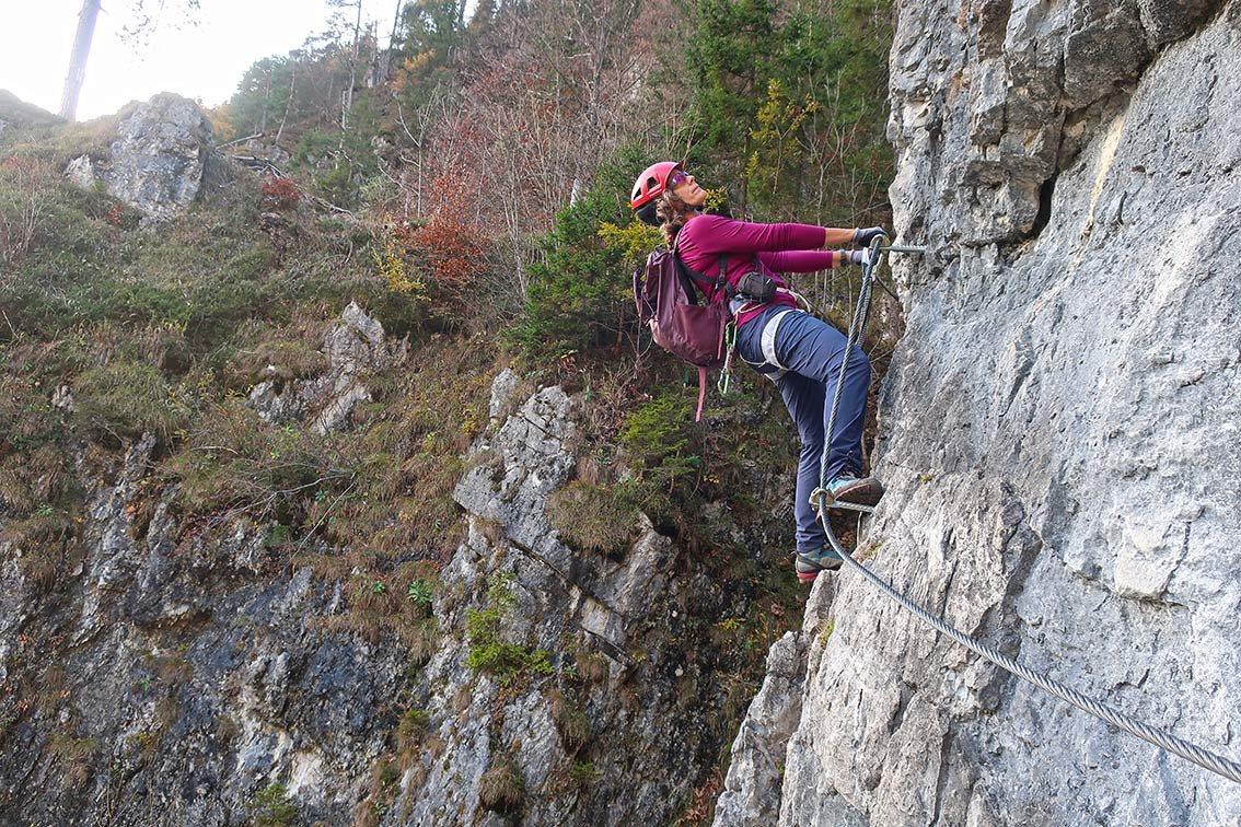 Bei Nässe ist die Ferrata und der Abstieg unangenehm.