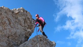 Die Steiganlage ist mit 415m Stahlseil gesichert und wurde vom ÖTK mit tatkräftiger Unterstützung der Lienzer Bergrettung errichtet.