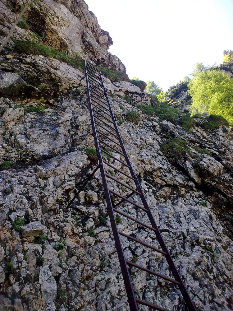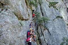 Trittsicherheit erforderlich! Nicht immer versichert. Die gesamte konditionelle Anforderung ist nicht zu unterschätzen. Für Kinder mit Ausdauer durchaus geeignet (Sicherungsseil/Klettersteigset und Helm nicht vergessen)!