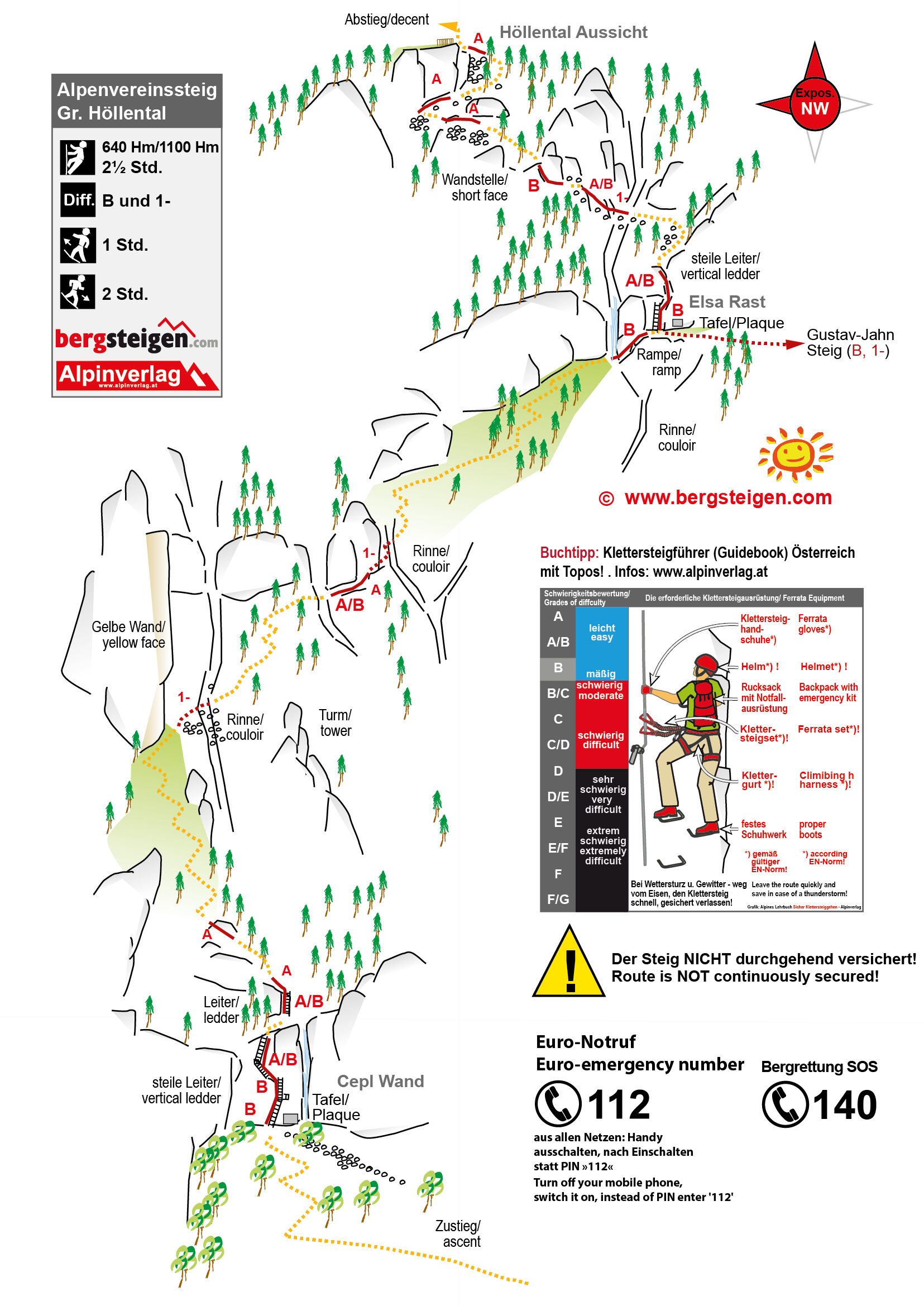 2. Dieser Steig ist NICHT durchgehend versichert und erfordert absolute Trittsicherheit!