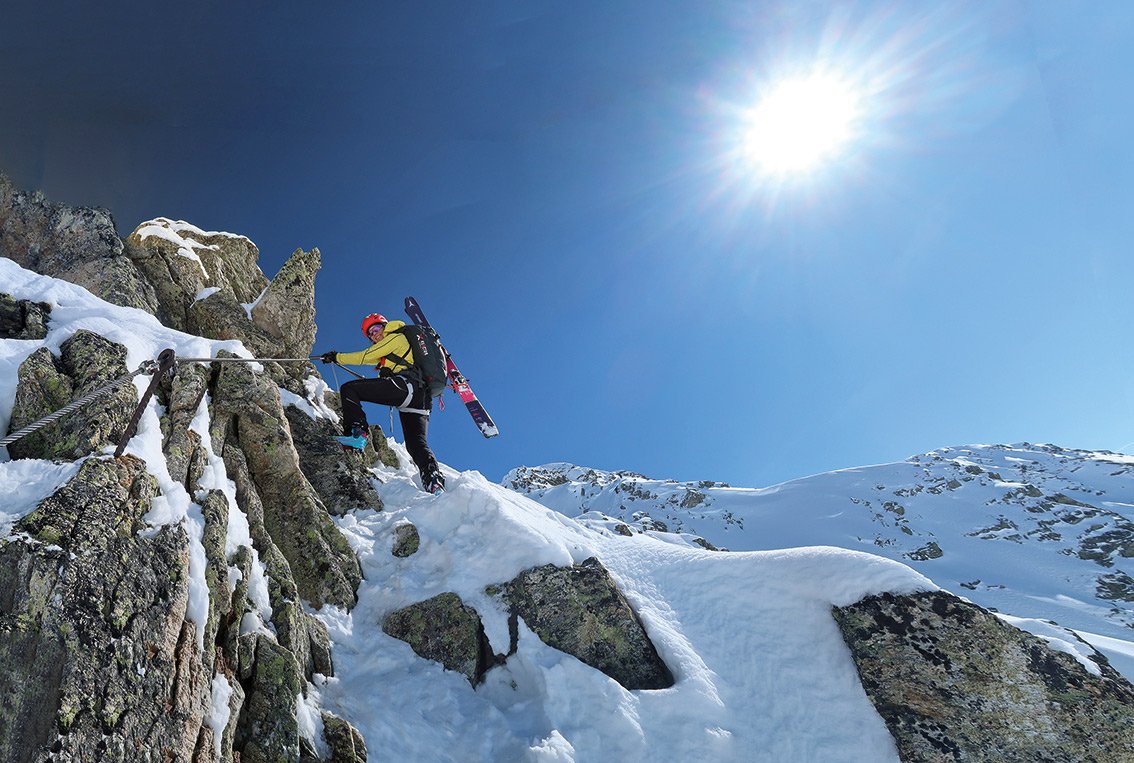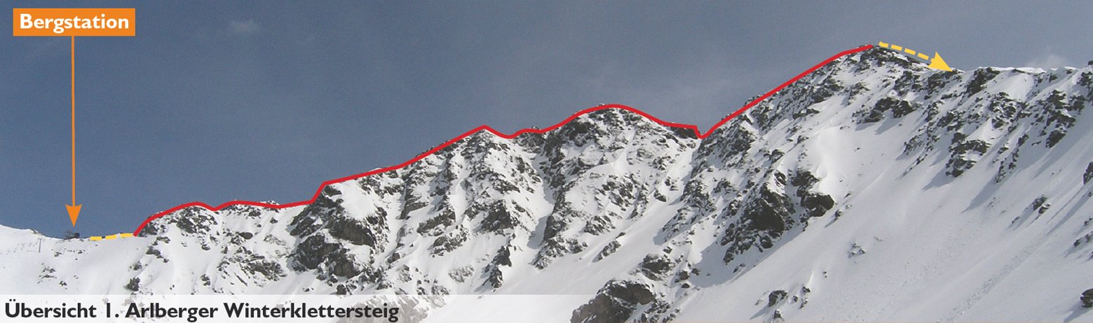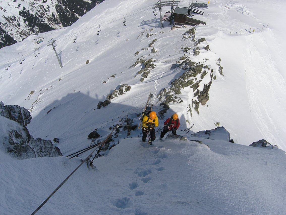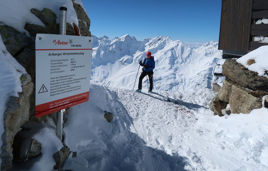 Der Arlberger Winterklettersteig - eine alpines Abenteuer, mit den Skiern am Rücken auf die Vordere Rendlspitze! Es ist ein einzigartiges Erlebnis, mit den Skiern am Rücken zur Vorderen Rendlspitze aufzusteigen und das Panorama des Arlbergs zu genießen. Zur Krönung nach dem 850 m langen Grat wählt man eine der unzähligen Skirouten und schwingt im lockeren Pulver fast 1500 Hm ins Tal.