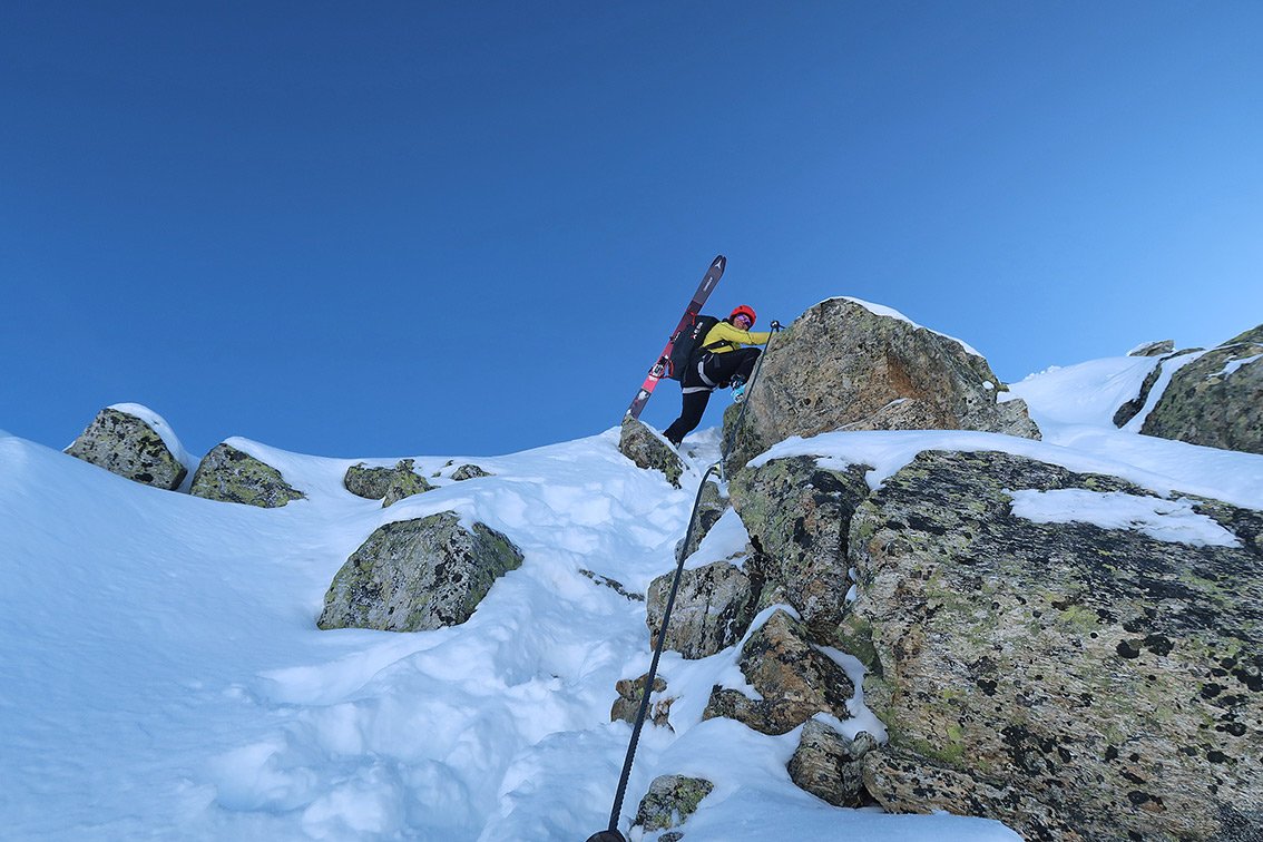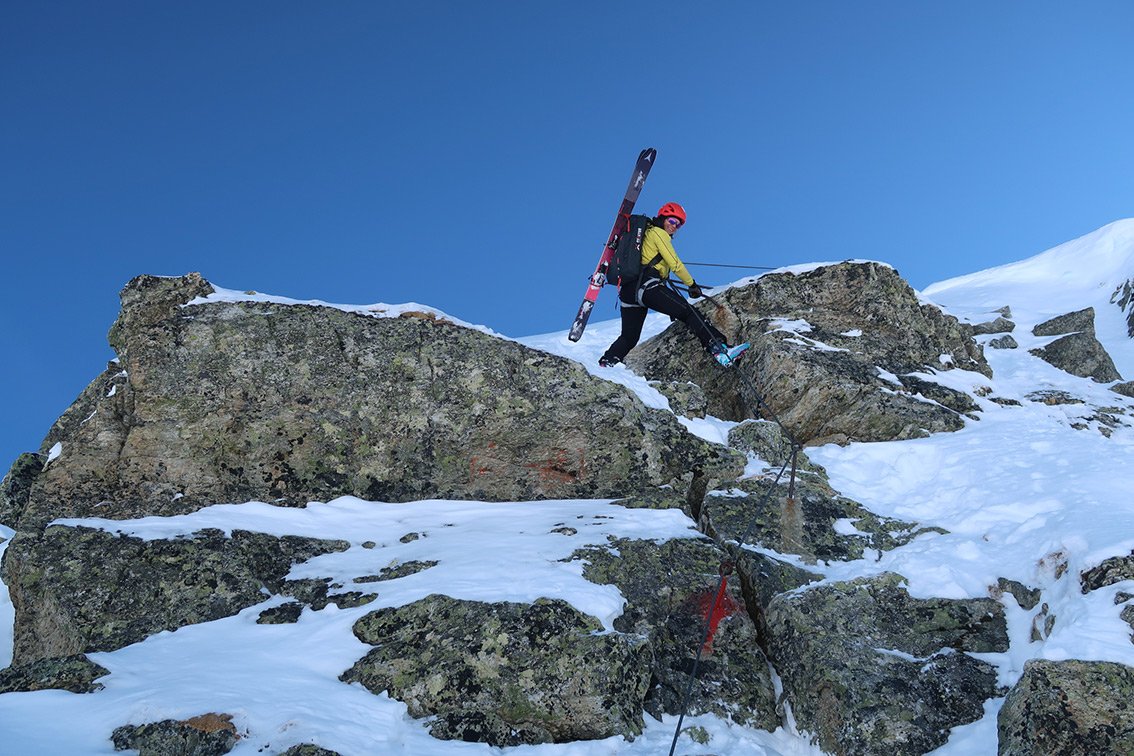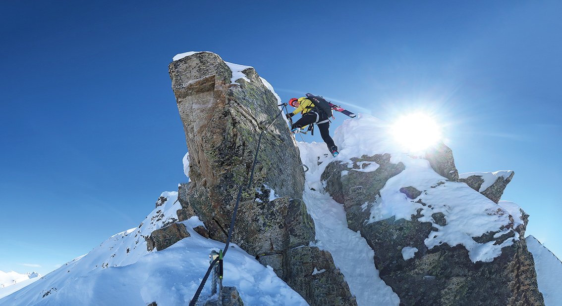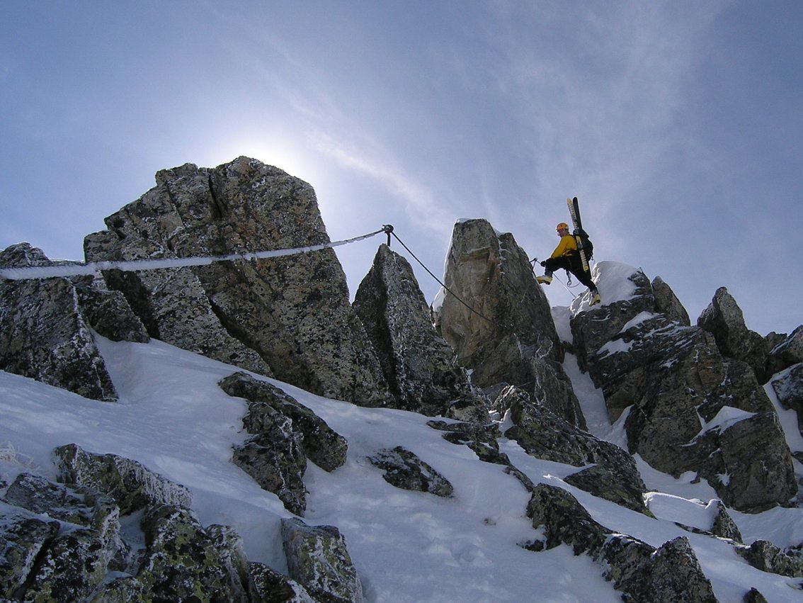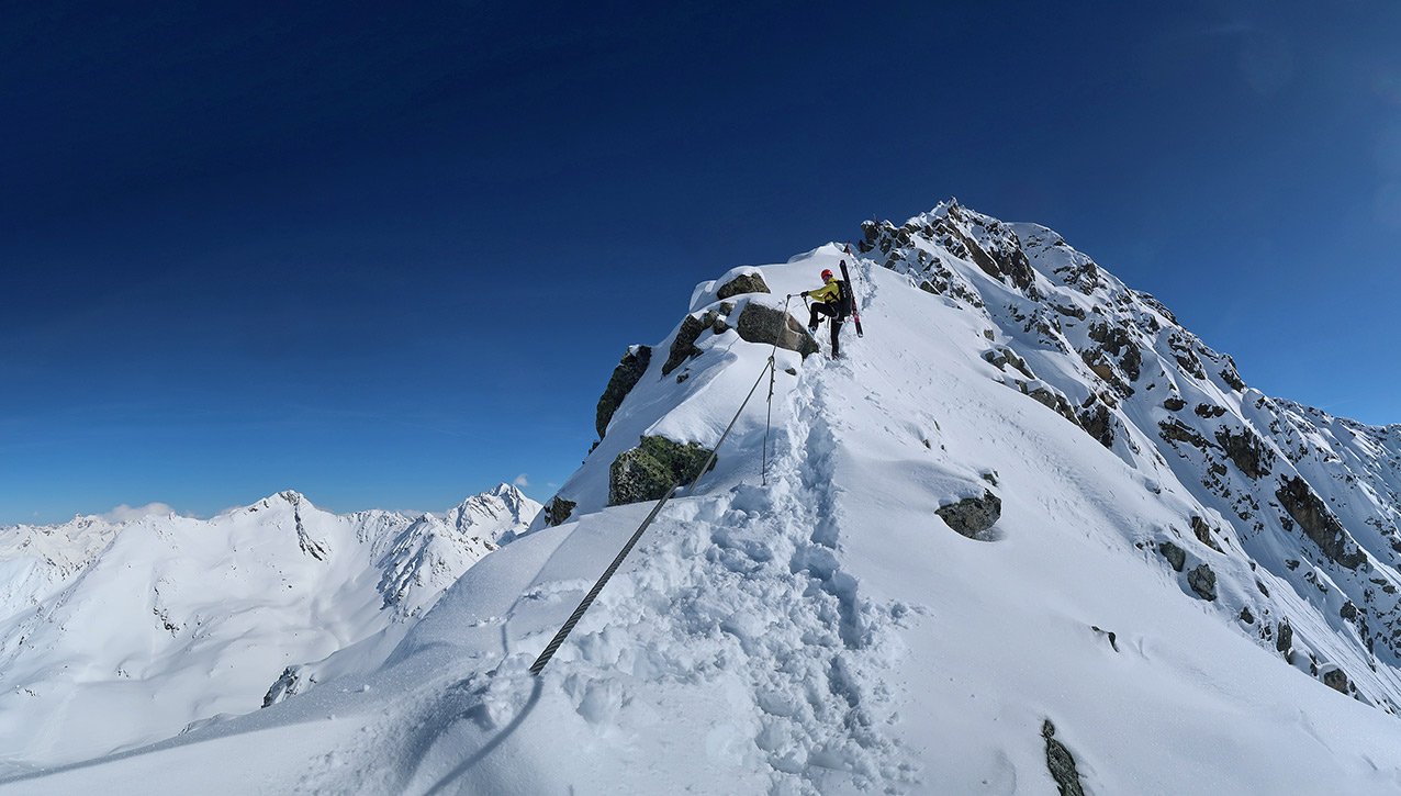 Der Arlberger Winterklettersteig - eine alpines Abenteuer, mit den Skiern am Rücken auf die Vordere Rendlspitze! Es ist ein einzigartiges Erlebnis, mit den Skiern am Rücken zur Vorderen Rendlspitze aufzusteigen und das Panorama des Arlbergs zu genießen. Zur Krönung nach dem 850 m langen Grat wählt man eine der unzähligen Skirouten und schwingt im lockeren Pulver fast 1500 Hm ins Tal.