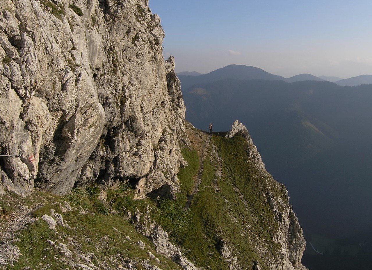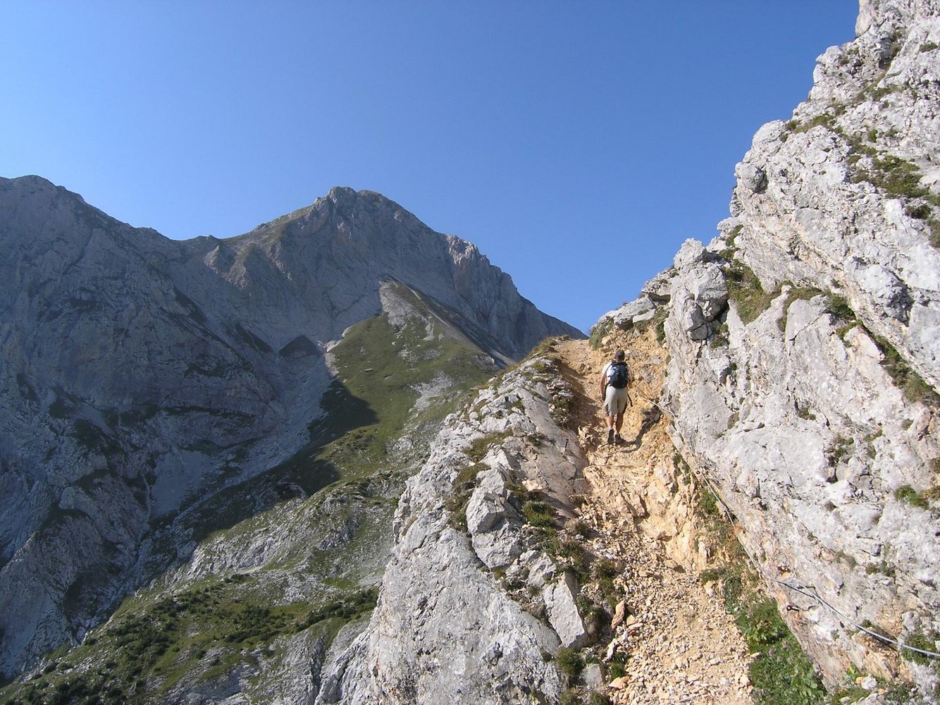 Kein klassischer Klettersteig, sondern ein nur stellenweise versicherter alpiner Steig (schwarzer Bergweg).