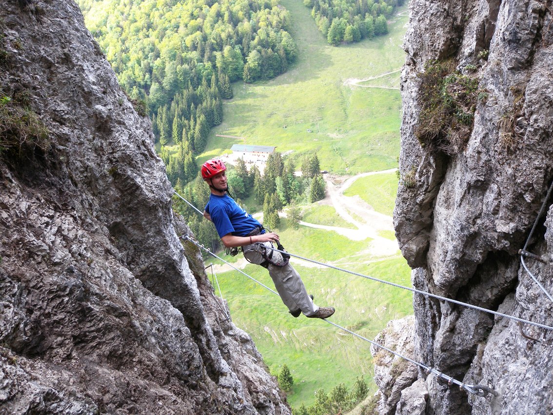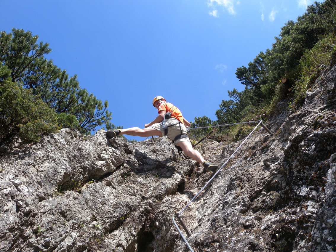 Der Bergkameraden Klettersteig ist der leichteste Wanddurchstieg im talnahen Klettersteigpark bei der Ottenalm. Die Tour hat zwei Seilbrücken und einen knackigen Überhang zu bieten. In Verbindung mit dem Zustieg über den Kammweg eine schöne Halbtagestour.