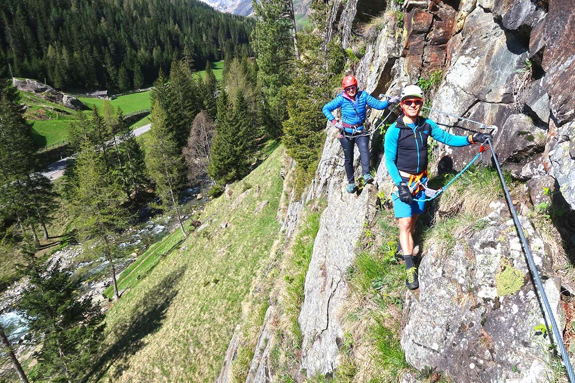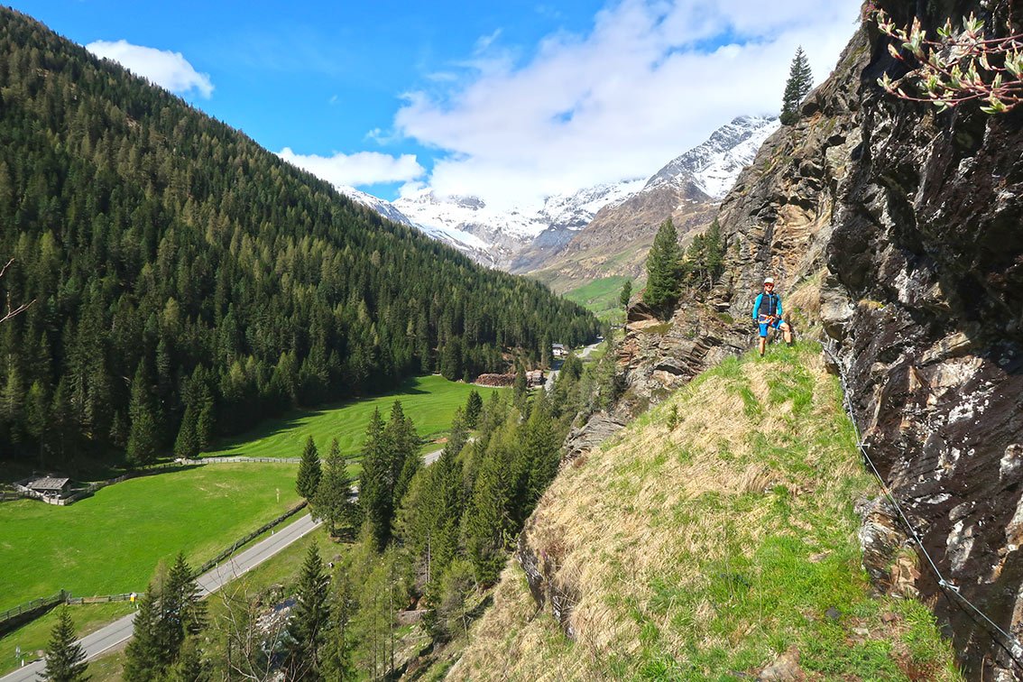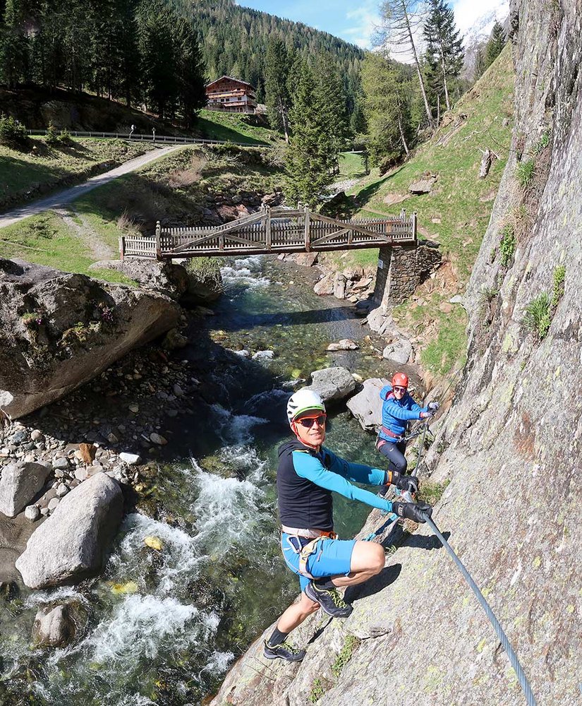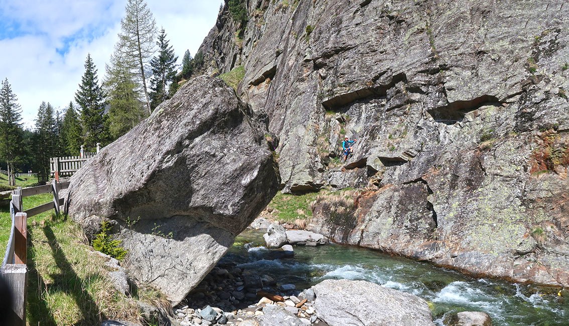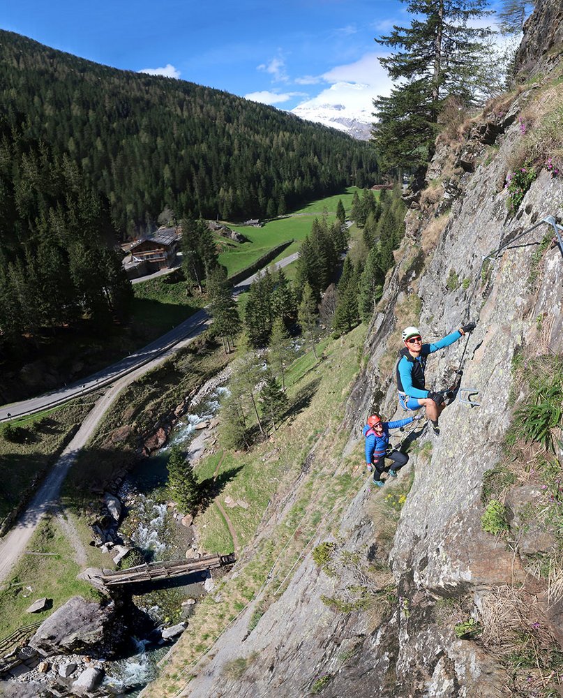 Der Bergkristall Familien Klettersteig ist eine landschaftlich schön gelegenen Ferrata an einer Felswand im Pfelderertal oberhalb von Moos im Passeiertal. Der Klettersteig ist als Rundkurs angelegt, die schweren Stellen (B/C bzw. C) sind sehr kurz, meist bewegt man sich im Bereich A und B. Herausstechend ist vor allem die Lage der Ferrata, an einer Südwand, direkt am rauschenden Pfeldererbach. Ein ideales Gelände, um erste Schritte am Stahlseil zu machen und gleichzeitig die wunderschöne Natur zu genießen.