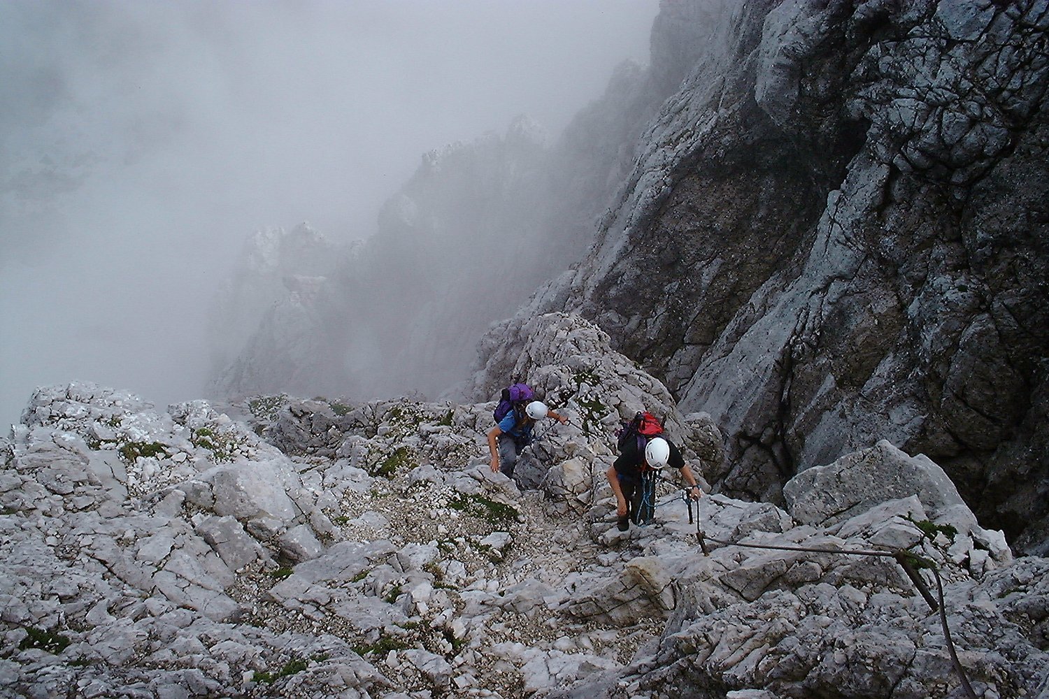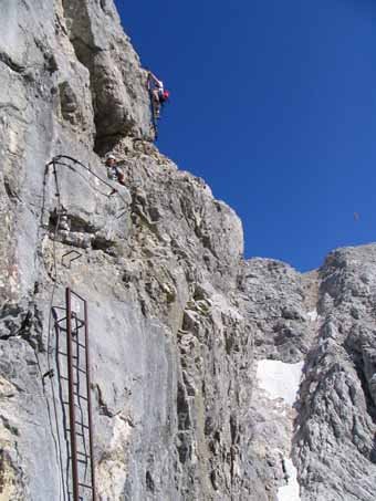 Der formvollendete 2te Steilaufschwung - wer erkennt die drei Klettersteigler darin?,