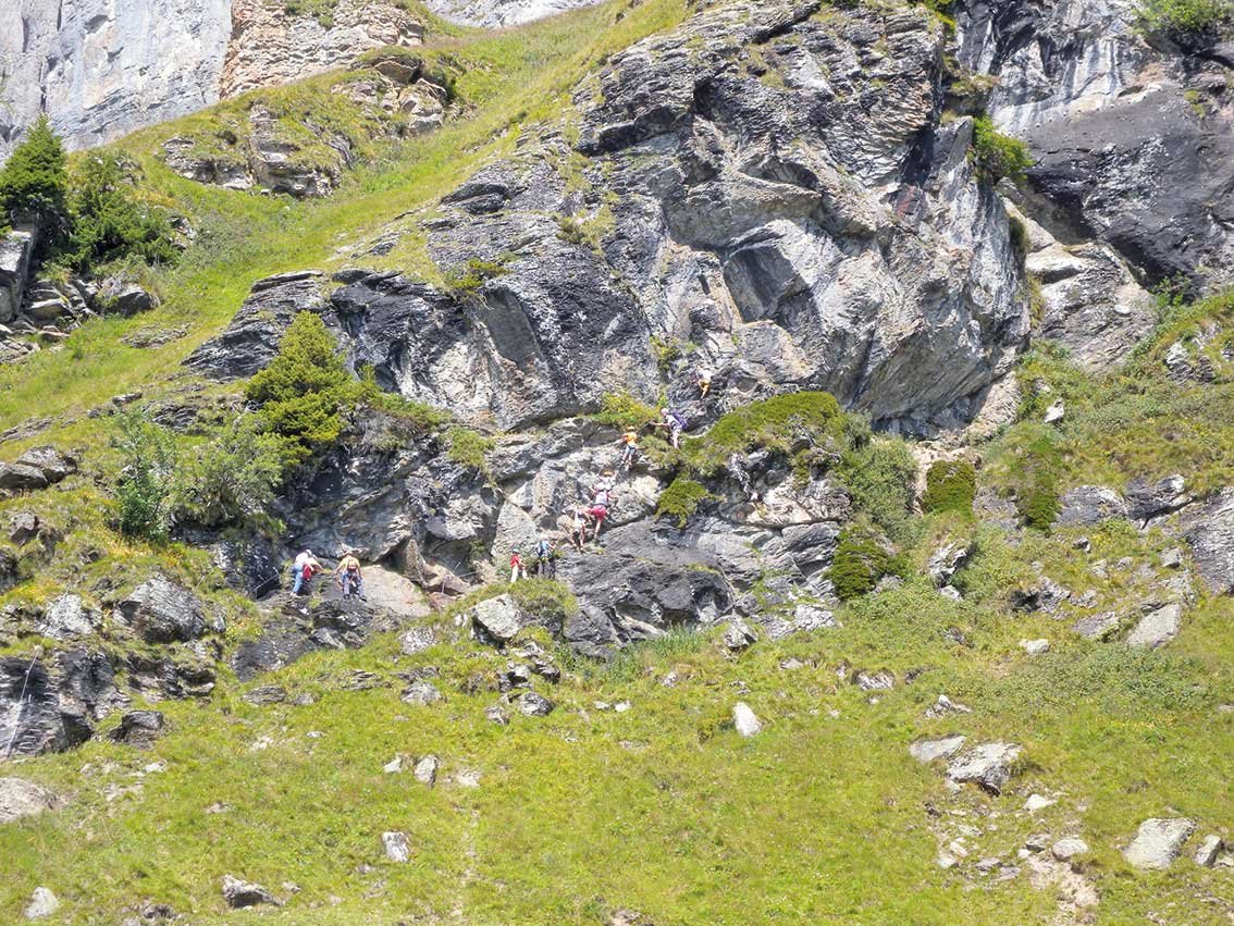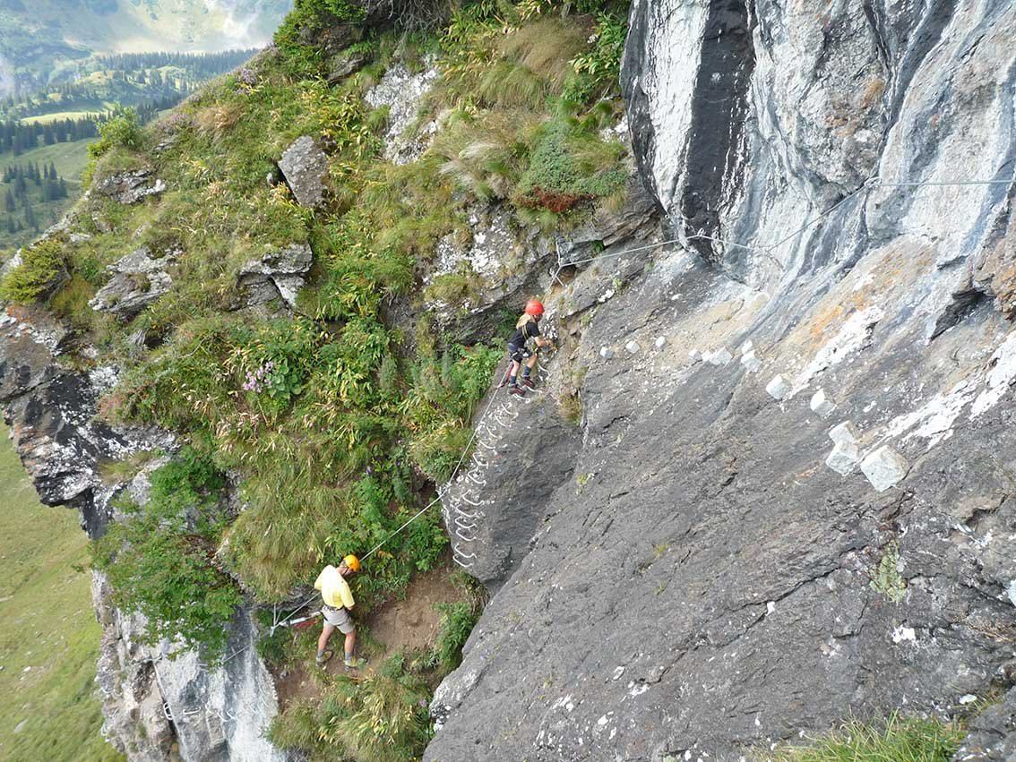 Von der Bergstation über den Wiesenhang zum bereits sichtbaren Klettersteig aufsteigen. Der Einstieg befi ndet sich auf der westlichen Seite des Steiges.