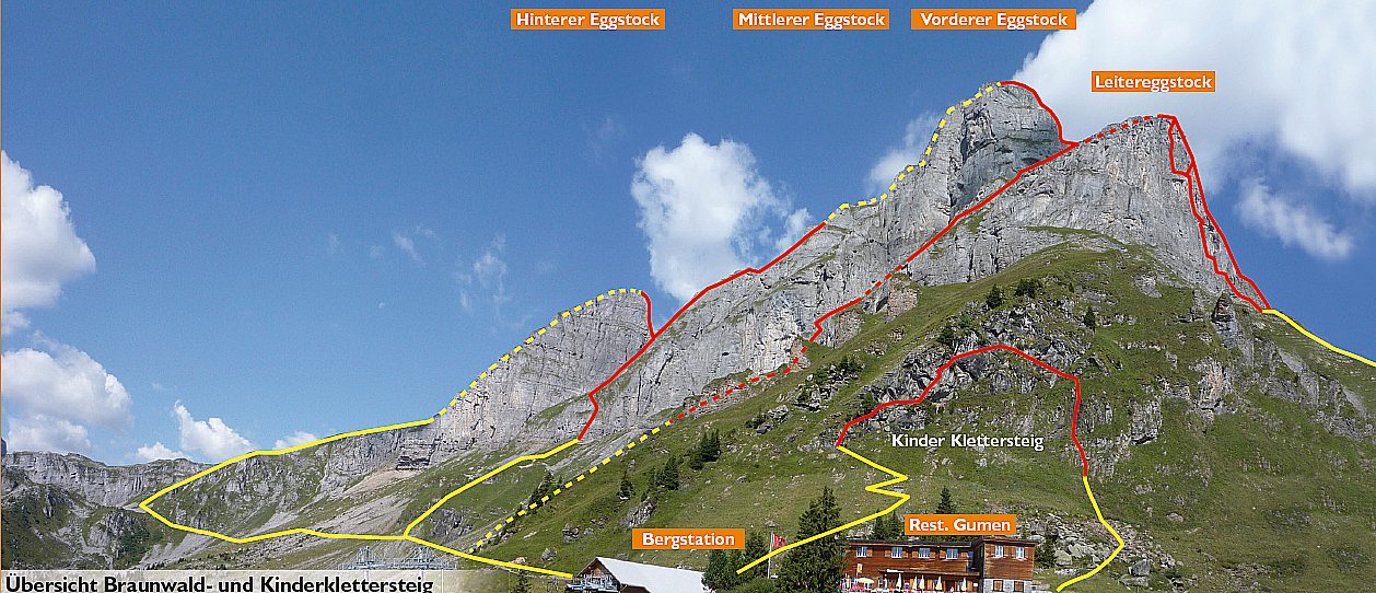 Nach Regenfällen kann der Fels länger feucht und somit rutschig sein. Klettersteigausrüstung kann im Bergrestaurant Gumen gemietet werden. Wer mit Kindern unterwegs ist, sollte statt des Fußmarsches durch Braunwald mit der Pferdekutsche fahren. Für die Kleinen ist das ein ganz besonderes Erlebnis.
