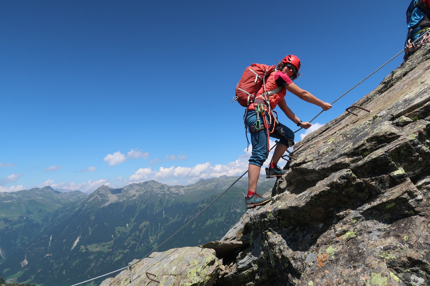 Klettersteigsets können beim Intersport bei der Versettla Talstation auch ausgeliehen werden.