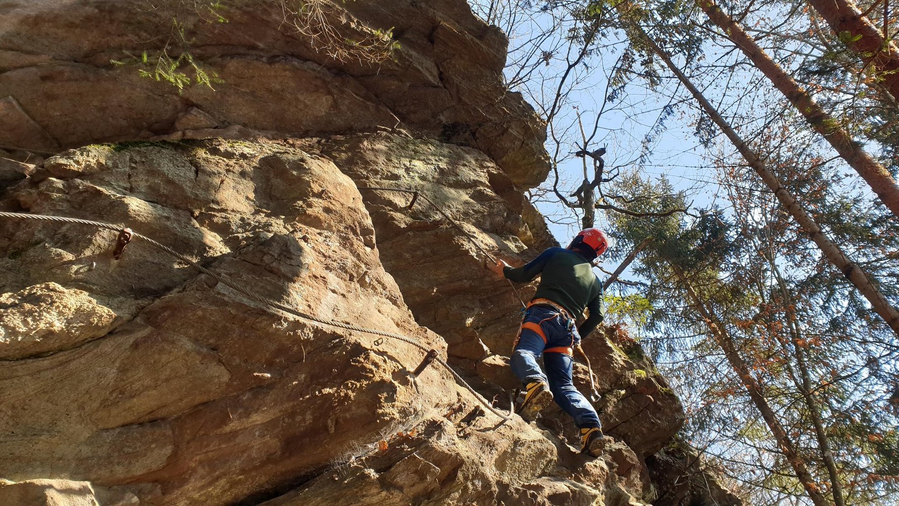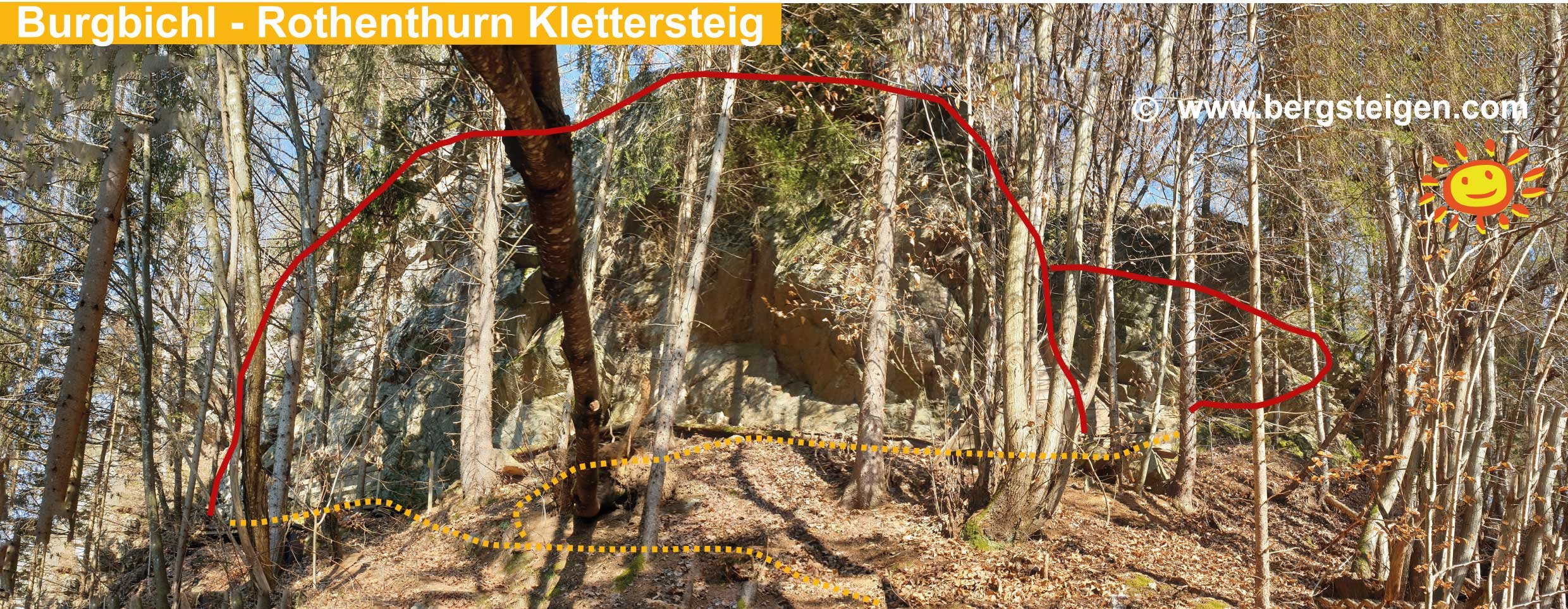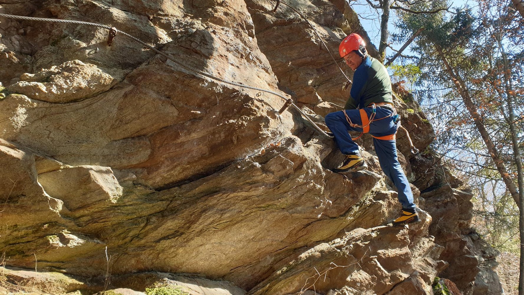 Eine kurze, rund 100 Meter lange Klettersteg-Runde im gleichnamigen Klettergarten. Der ca. 15-20 Meter hohe Urgesteinsfelsen, um den sich der Klettersteig schlängelt, liegt versteckt im Wald oberhalb des malerischen Schlosses Rothenthurn und ist einfach zu erreichen.