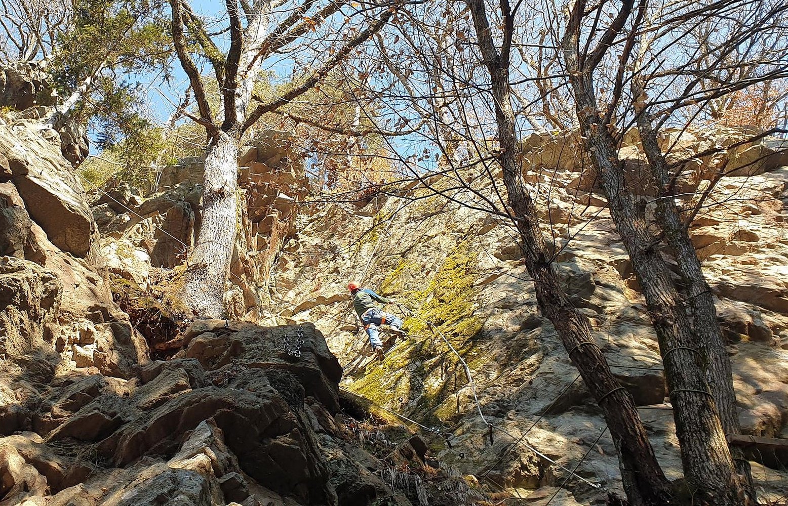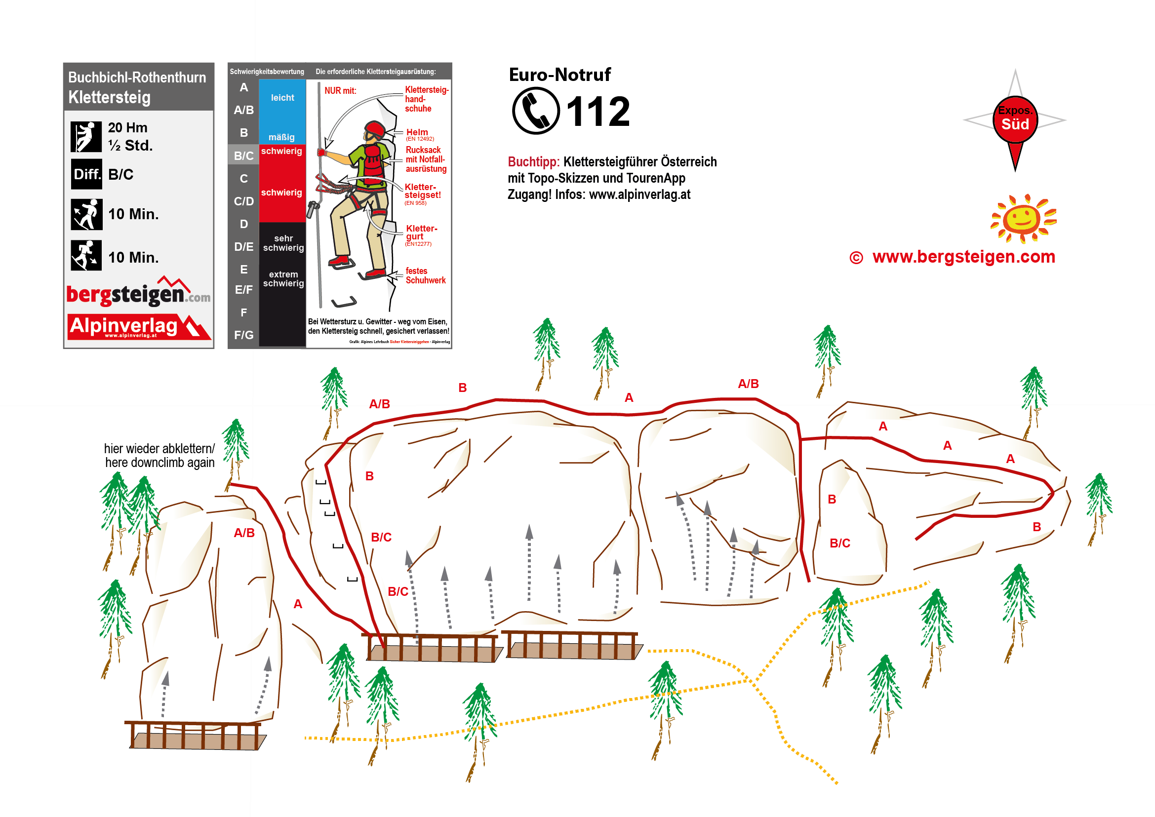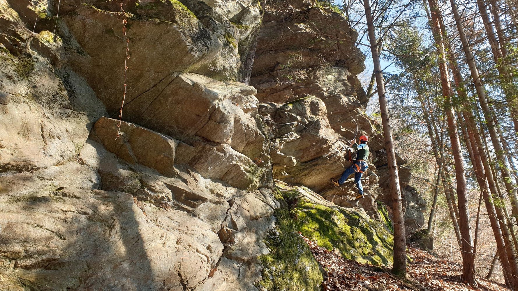 Eine kurze, rund 100 Meter lange Klettersteg-Runde im gleichnamigen Klettergarten. Der ca. 15-20 Meter hohe Urgesteinsfelsen, um den sich der Klettersteig schlängelt, liegt versteckt im Wald oberhalb des malerischen Schlosses Rothenthurn und ist einfach zu erreichen.