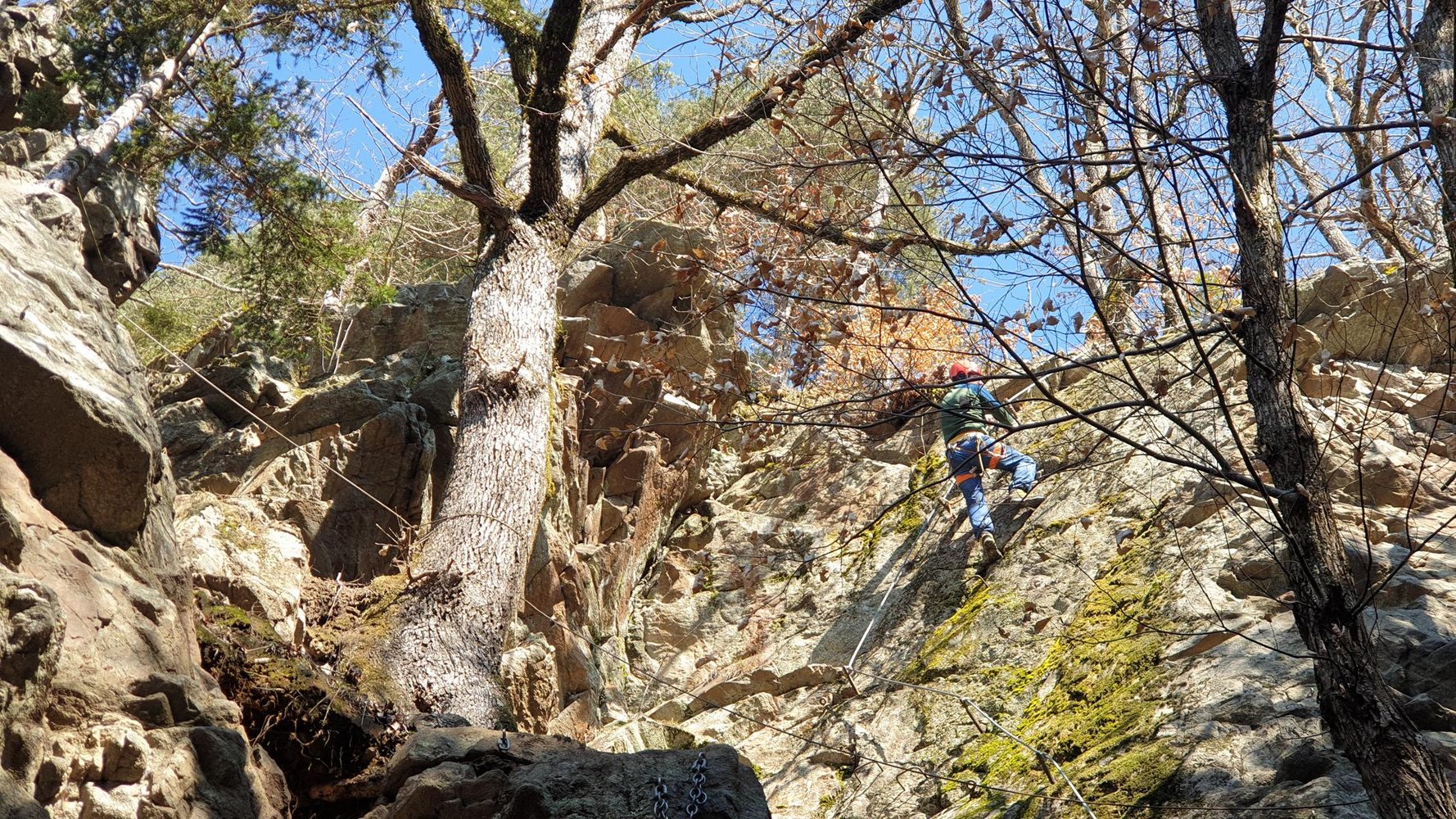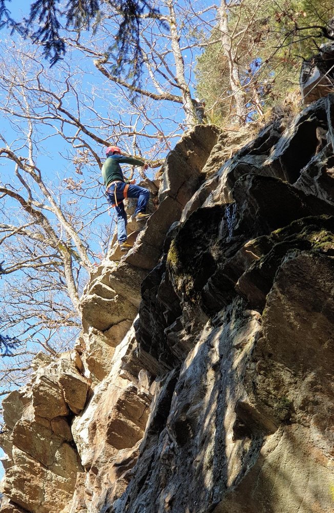 Wenn Kletterer in der Wand sind, keinen Steinschlag auslösen!