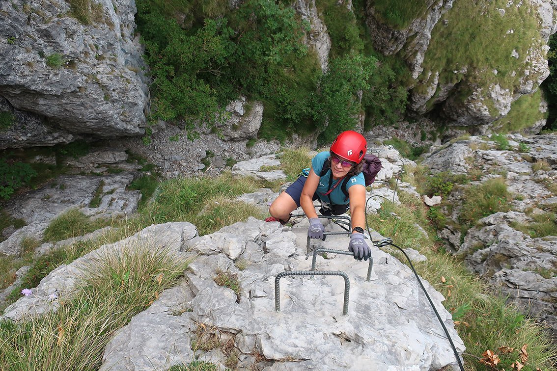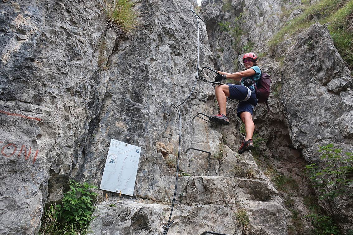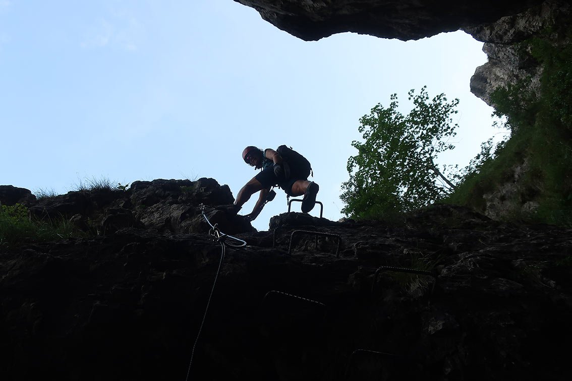 Der Klettersteig ist mit Ketten, Stahlseil und vielen Trittklammern ausgestattet.