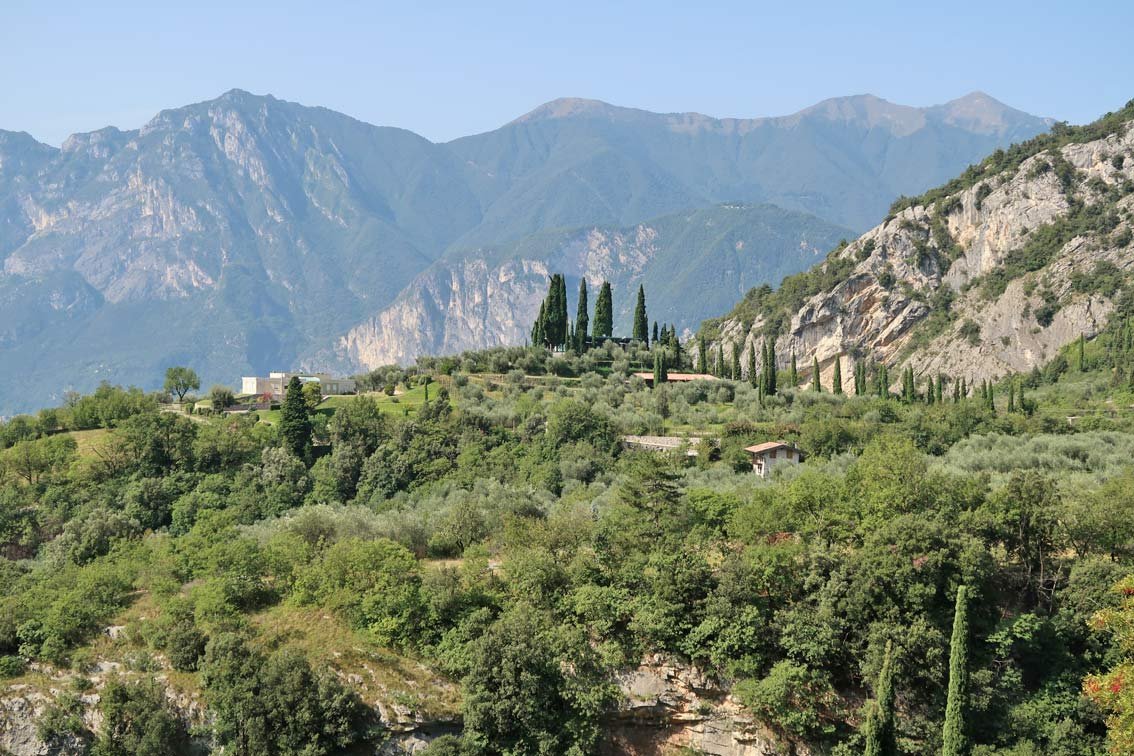 Vom Ausstieg zuerst über die Karstfläche der Markierung folgen und rechts zum Gipfelkreuz aufsteigen (nicht nach links oder gerade). Vom Kreuz über den markierten Weg hinunter nach S. Maria di Laghel und zurück nach Arco. In Arco durch die Fußgängerzone - vorbei an den Eisgeschäften und dem Cafe am Hauptplatz - zum Parkplatz bei der Brücke bzw. dort weiter auf der Straße zum Freibad.