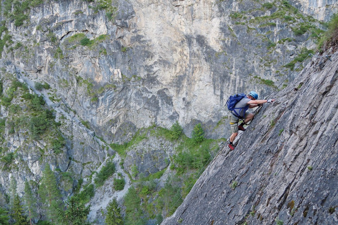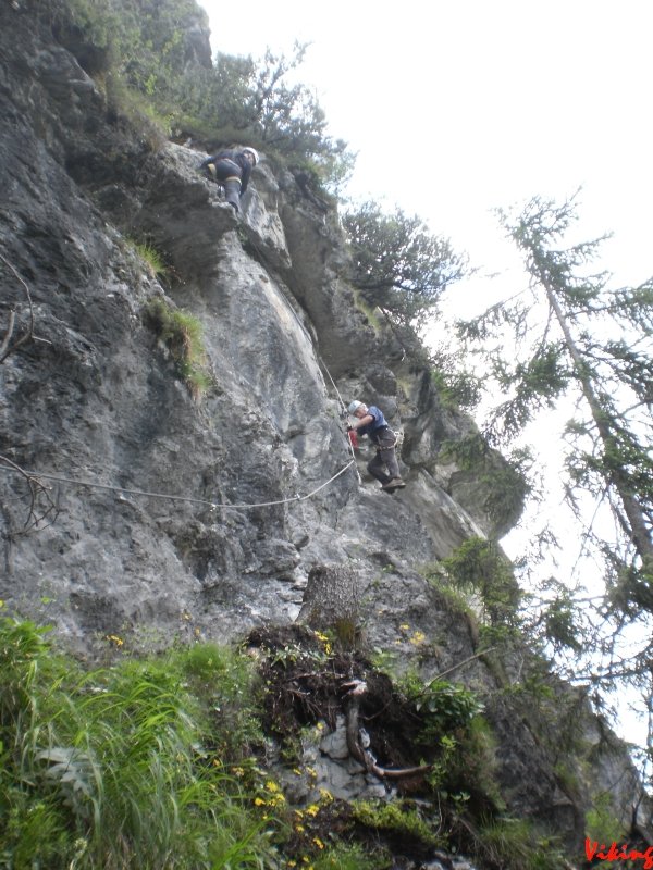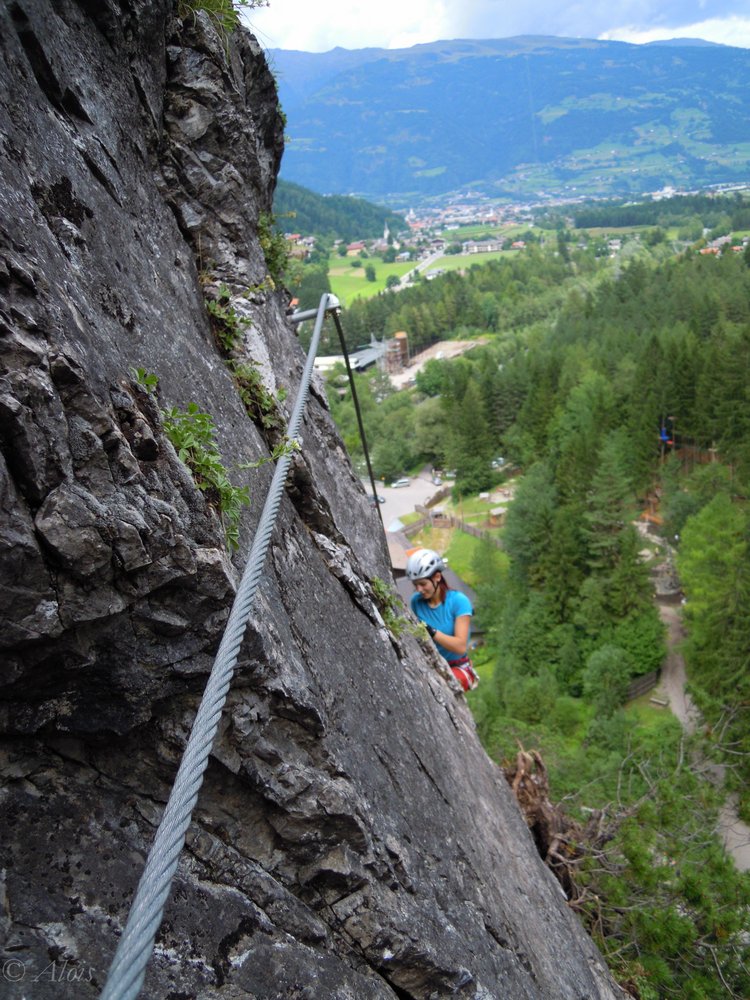 von Alois Moosmann.Zuerst über den Galitzenbach über eine Seilbrücke (A), dann auf einer Plattenwand (kurz E, dann C bis D) höher klettern. Weiter Wandkletterei (Stelle D) zu einem kleinen Überhang (C). Es folgt ein steiler Pfeiler (Stelle D), danach etwas leichter zur Abzweigung (Rastplatz). Links ist die leichte Variante (D), gerade gelangt man zum Notausstieg (B) und zur Variante Masochist (E/F).