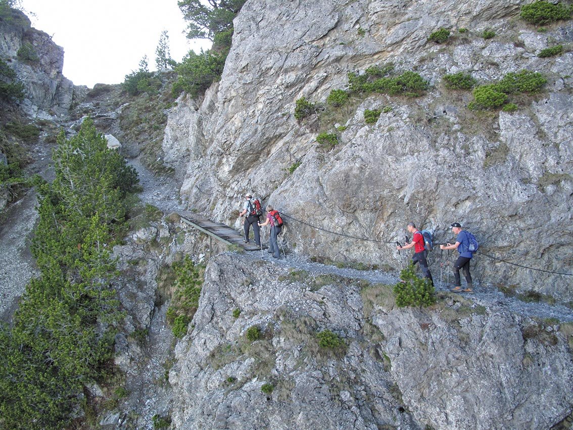 Vom Ende der Versicherungen über den Sarojasattel nach Planken absteigen und mit dem Postauto ins Tal fahren.
