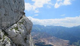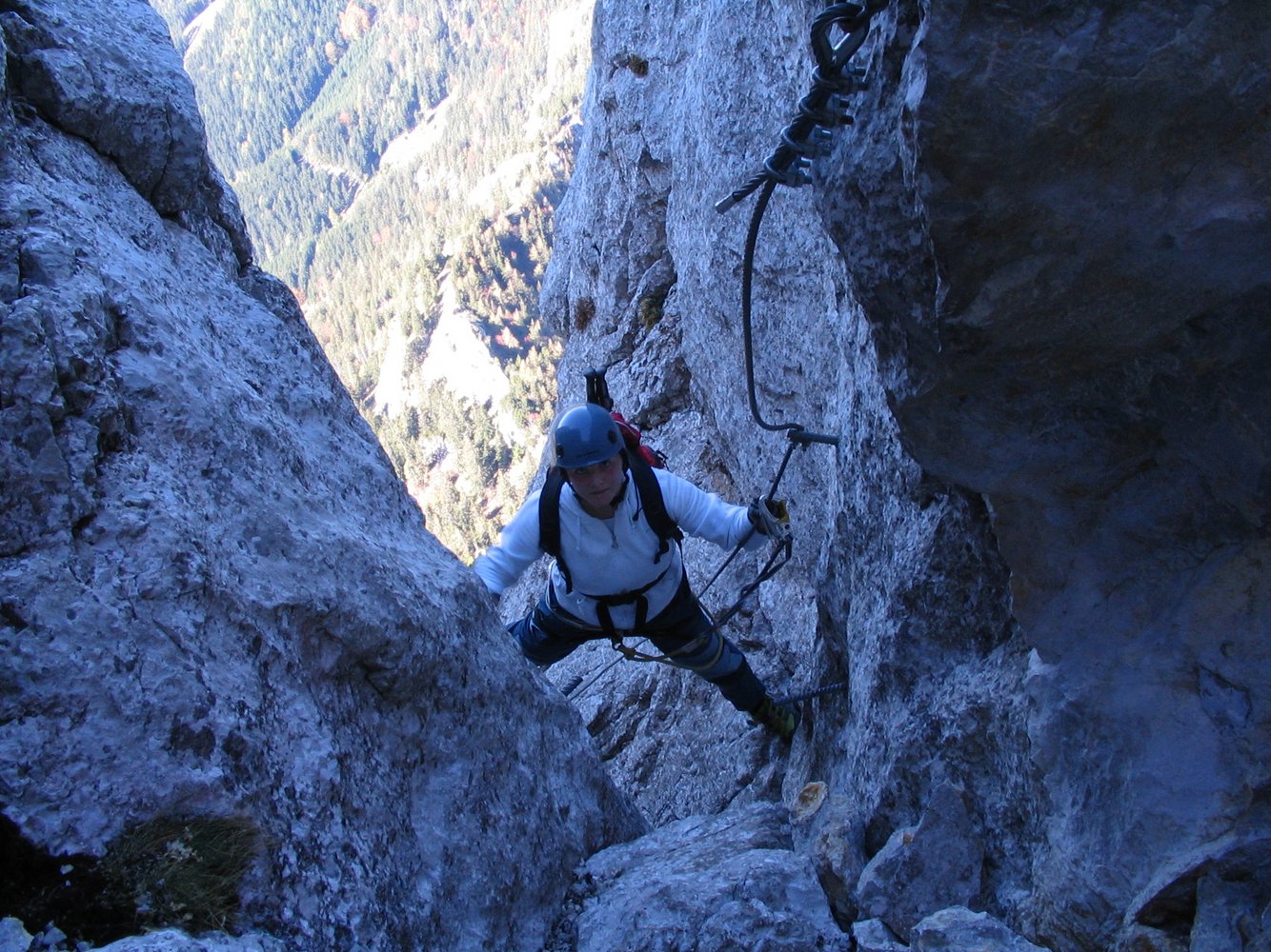 Der Klettersteig ist landschaftlich wunderschön. Ihn zu gehen macht Spaß. Die Stahlseile könnten für meinen Geschmack etwas straffer gespannt sein.,