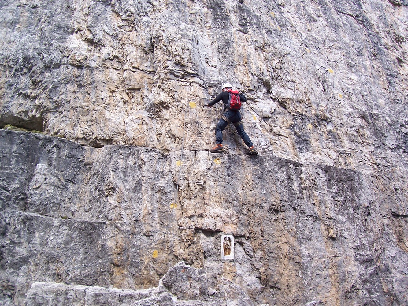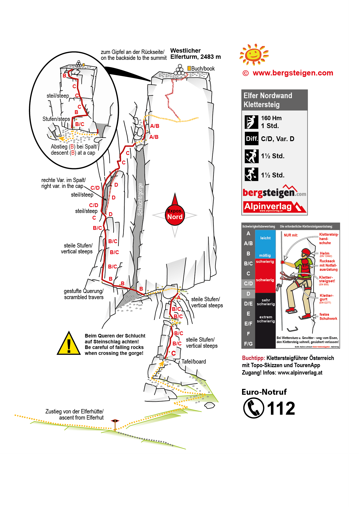 Man kann den Elfer Nordwand Klettersteig gut mit dem Elferkofel Klettersteig (C) kombinieren, zuerst an der Nordwand hinauf, dann rechts zum Einstieg des Elferkofel Klettersteige.
