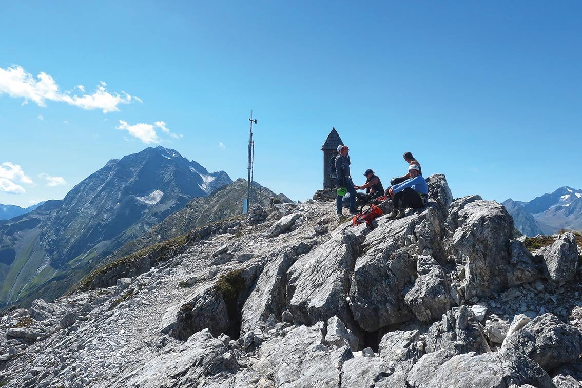 Vom Steigende zum Zwölfnieder-Sattel absteigen und auf dem Panoramaweg zurück zur Bergstation (fast eben, schöner Ausblick auf das Pinnistal und die Bergwelt dahinter)