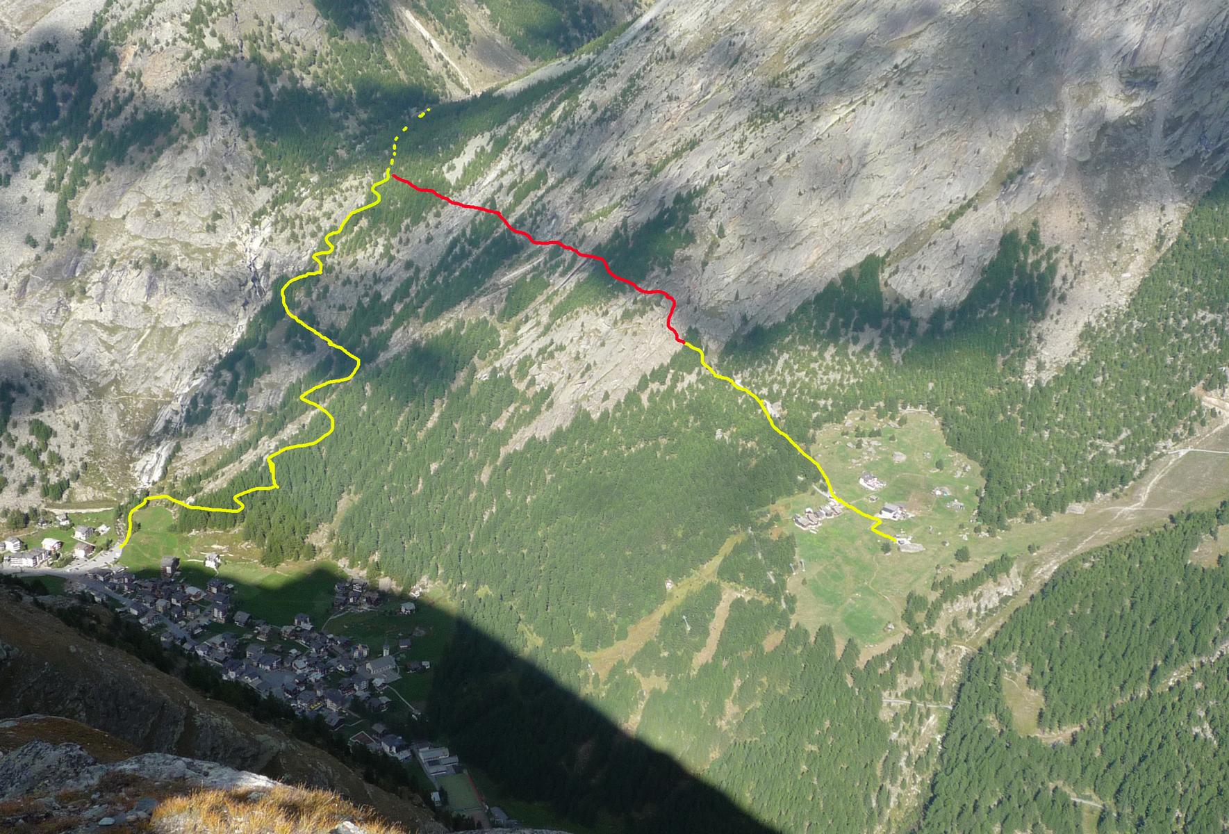 Entweder auf dem markierten Weg nach Saas Almagell absteigen (¾ Std.), oder noch auf einen Sprung zur schönen Almagelleralp hinauf (½ Std.).