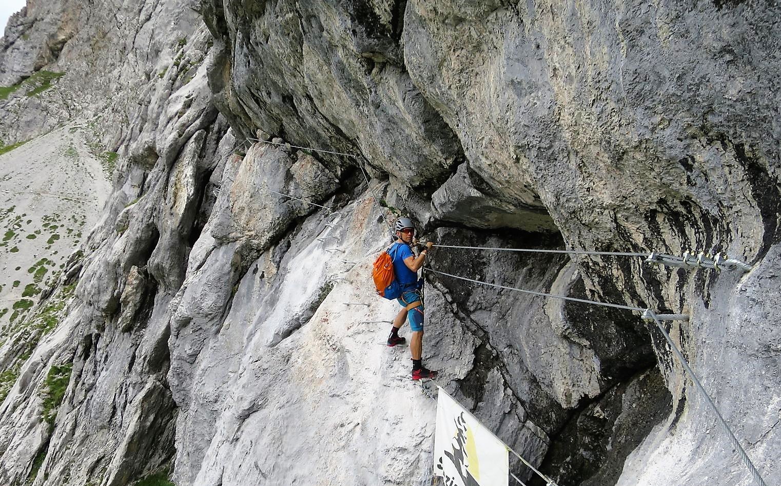 Kein Fluchtweg, das heißt, man muss den Steig bis zum Ende durchklettern.