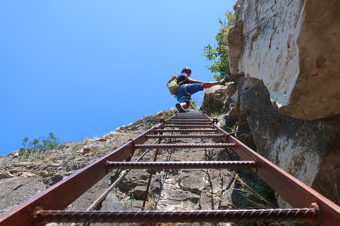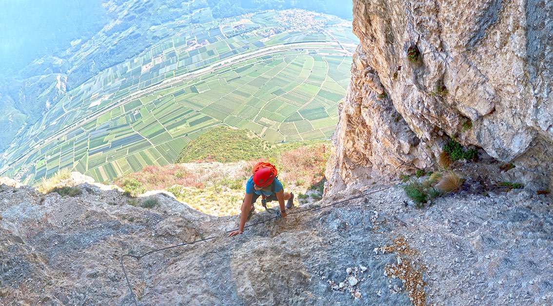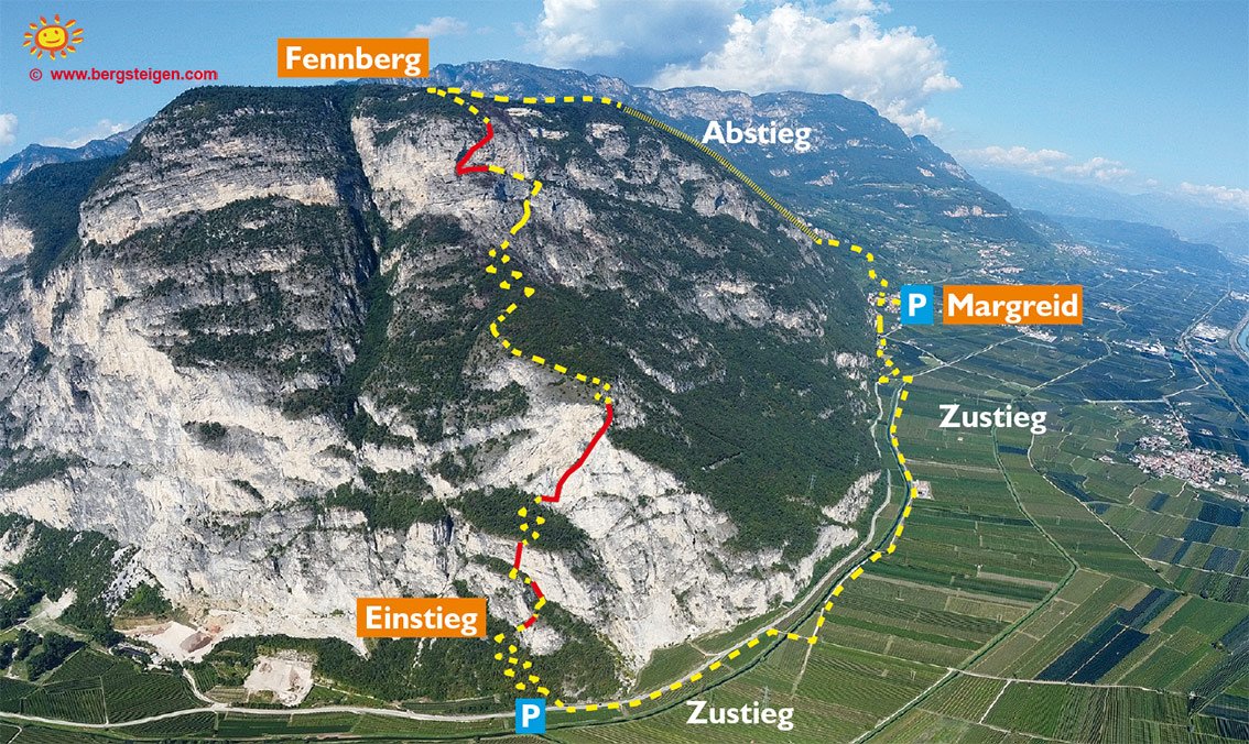 Der Fennberg Klettersteig ist eine schöne Ferrata, die sich vor allem im Frühjahr (Blumenpracht) und Herbst (Weinernte) anbietet. Diese Ferrata verläuft direkt an der Grenze zwischen Südtirol und Trentino, an den Osthängen des Etschtals. Das Highlight des Klettersteiges sind die steilen Wandstellen im unteren Teil, die mit drei tollen Leitern und zahlreichen Klammern überwunden werden. Im Gesamten eine durchaus lohnende Klettersteigtour, die man gut auf der Fahrt in Richtung Süden als willkommene Rast mit einbauen kann.