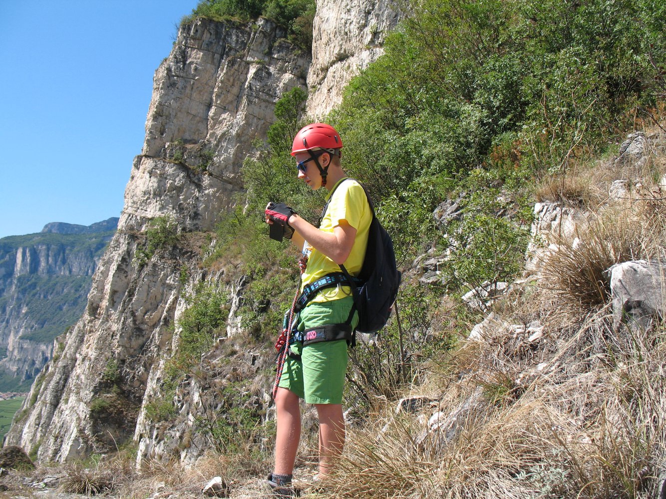 Komplette Klettersteigausrüstung und Helm.