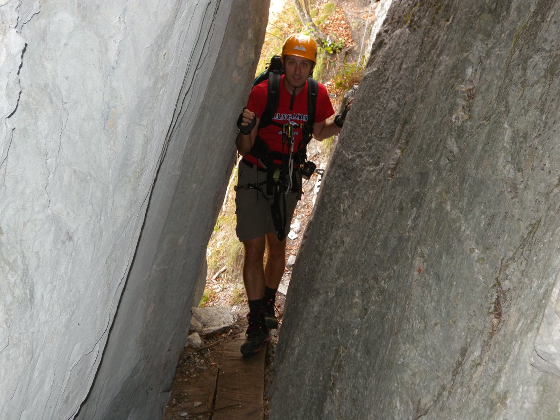Perfekt im französischem Stil abgesichert (es gibt ein extra Sicherungsseil, welches man meist nicht zum Klettern verwendet).