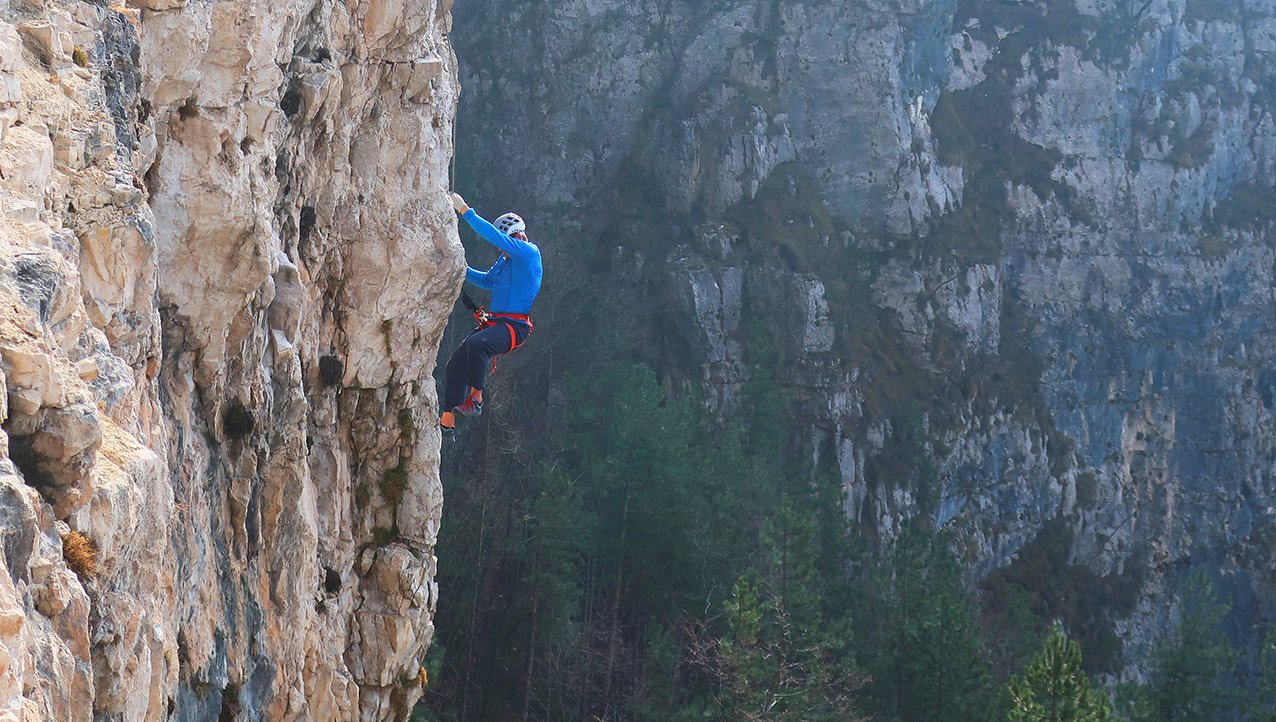 Bei Nässe sind die Route und vor allem der Zu- und Abstieg unangenehm. Im Sommer liegt die Wand am Vormittag im Schatten.