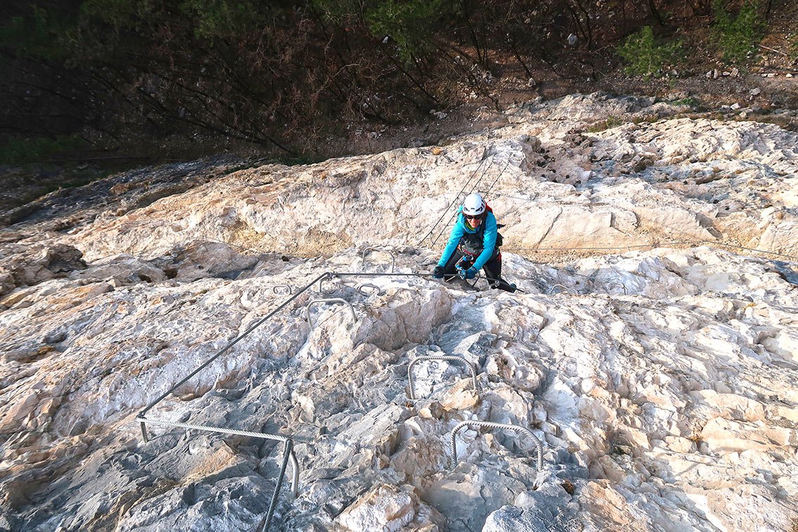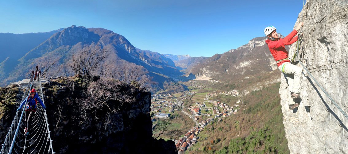 In den nach Westen ausgerichteten Felswänden oberhalb von Valbastico wurde mit der Ferrata Anelli dell Anguane ein wahres Klettersteigeldorado geschaffen, welches vor allem den Einsteiger und Genuss-Klettersteiggeher anspricht. In Runden (Ringen) kann man diverse Varinaten an der fast 200 m hohen Felswand begehen. Gesamt wurden ca. 2200 Meter Stahlseil verlegt. Schmale Bänder, eine tolle Tibetbrücke und schöne, teilweise ausgesetzte, aber nie richtig fordernde Vertikalpassagen wechseln mit gestuftem Gelände, auf dem man gut rasten kann, ab. Abseits vom Tourismusrummel um den Gardasee kann man in dieser tollen Landschaft einen wirklich schönen Klettersteigtag verbringen, danach lässt man den Tag in der kleinen Bar oder der Caverne Agriturismo Al Cucco gemütlich und sehr italienisch ausklingen. Im Jahr 2025 wurde als absolutes Highlight die Scala Grazia - eine 75 m lange Leiter gebaut, eines der längsten Ferrata Leiter in Europa! Die Initatioren haben wirklich eine tolle Klettersteiganlage geschaffen, die man sich nicht entgehen lassen sollte!