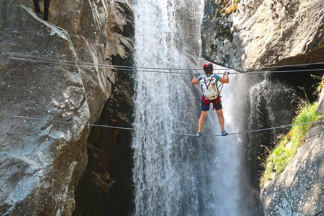 Bei viel Wasser kann es auf den letzten beiden Seilbrücken feucht werden - bei Hochwasser (Hochwassergefahr) sollte man diese Ferrata meiden.
