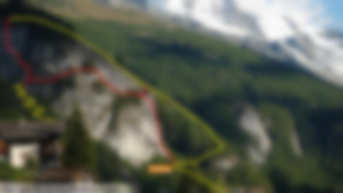 Vom Parkplatz ein paar Meter auf der Straße zurück nach Evolène, dann rechts auf der Wiese zum Waldrand und dem beschilderten Weg steil hinauf zum Einstieg folgen.