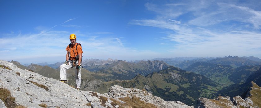Komplette Klettersteigausrüstung, Helm und Klettersteighandschuhe, für Schwächere evtl. ein Sicherungsseil.