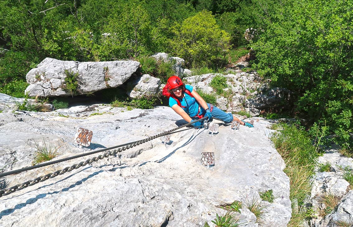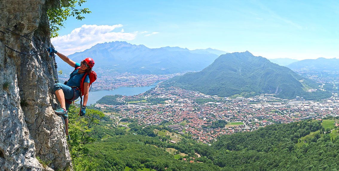 Tolle, kräftige und ausdauernde Ferrata Tour oberhalb von Valmadrera am Como See. Die Route hat einige knackige Steilpassagen und ist über weite Strecken für die Unterarme recht fordernd. Am Ende steht man auf dem Corno di Canzo Orientale und hat einen tollen Tiefblick auf das Südende des Como Sees und das Häusermeer von Lecco. Ein schöner Ferrata-Tourentag an der Westseit des Lago di Como, bei dem man oben noch die kurze Ferrata del 25° Venticinquennale oder die lange Überschreitung des Monte Moregallo Kammes anhängen kann.