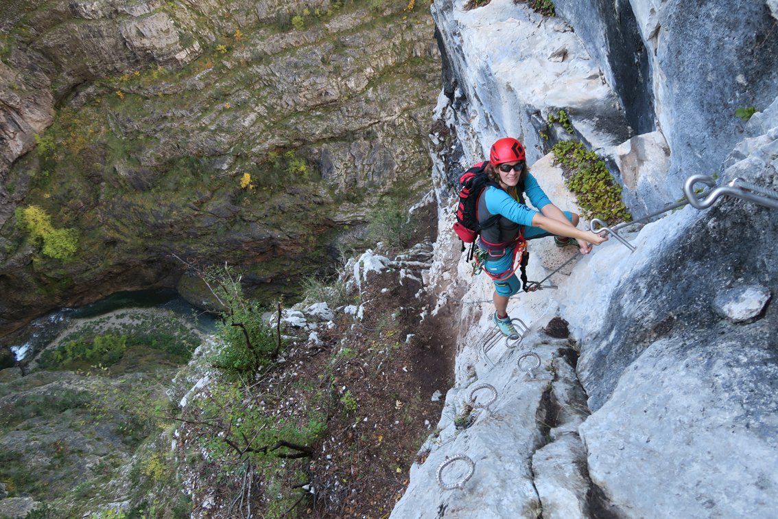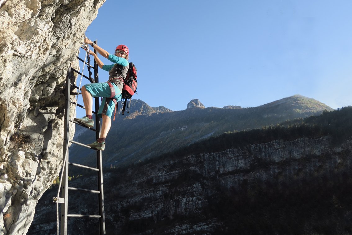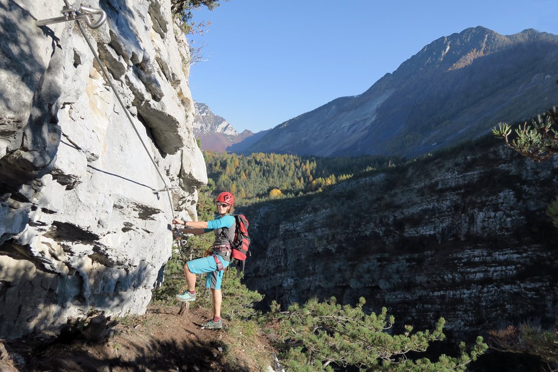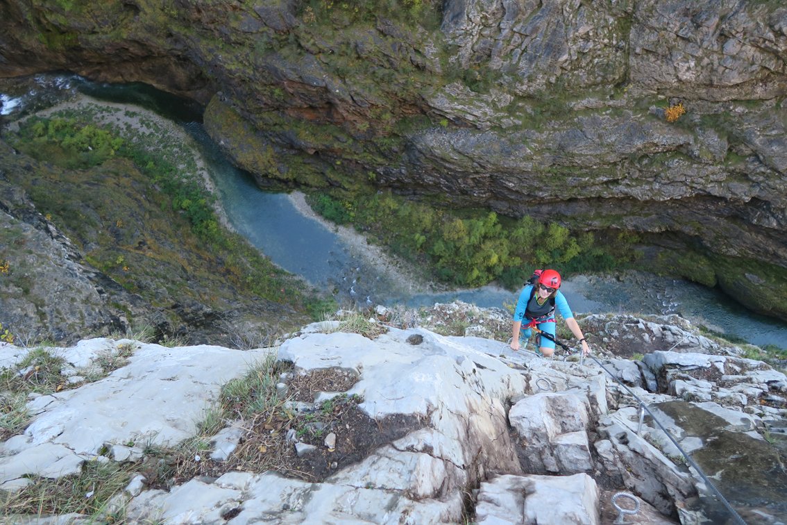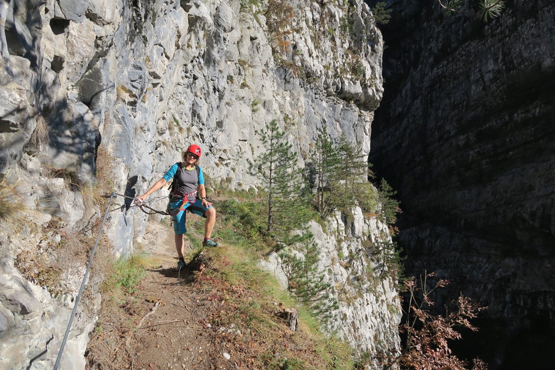 Achtung: Bei Nässe kann der Klettersteig recht unangenehm und rutschig sein (im Herbst ist die enge Schlucht oft länger feucht).