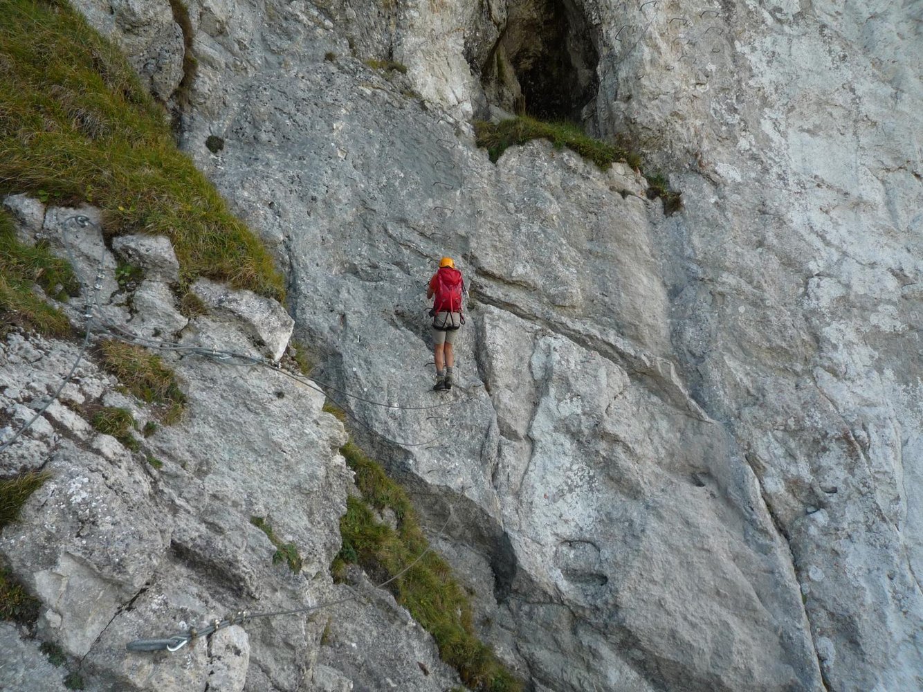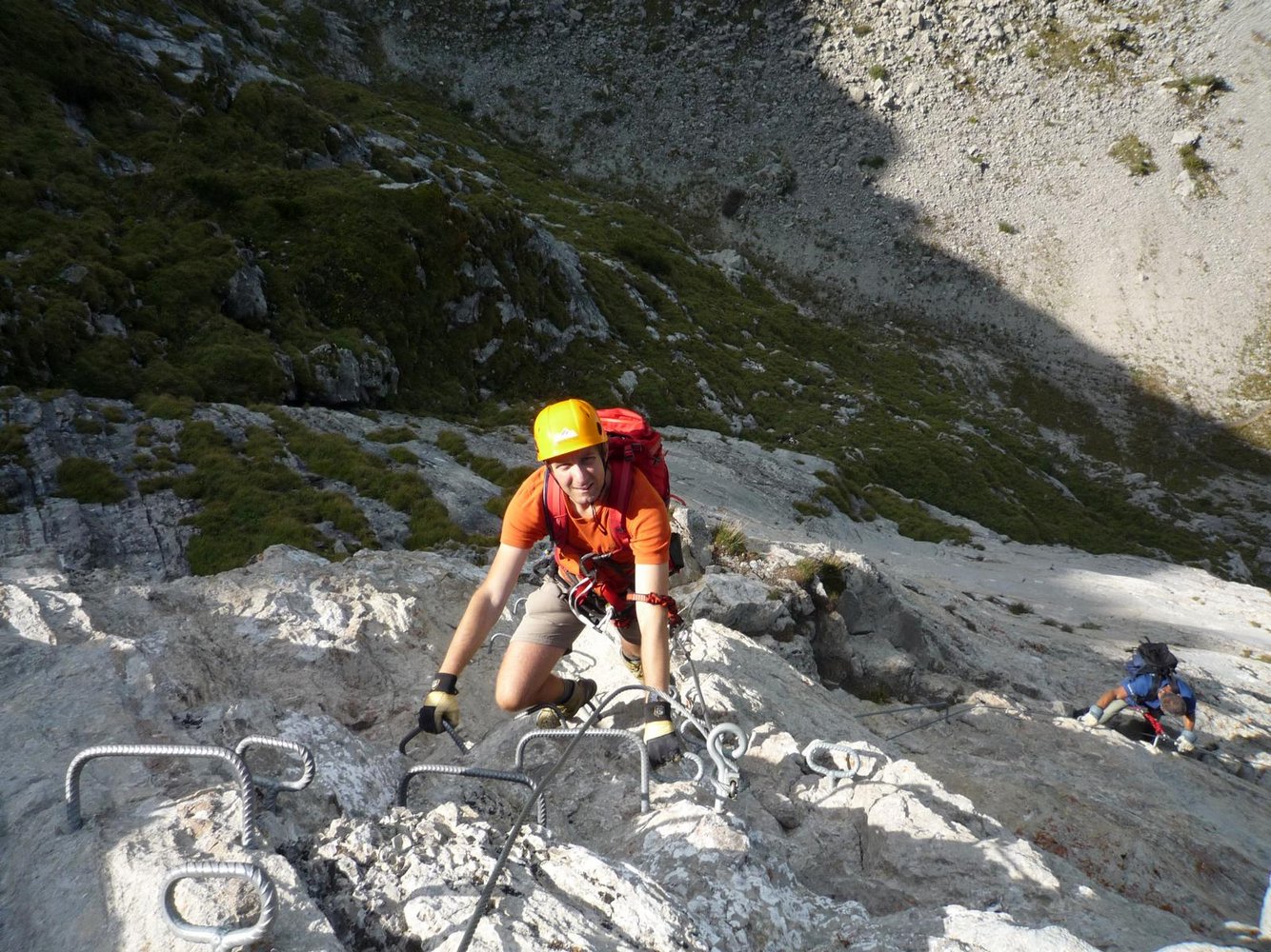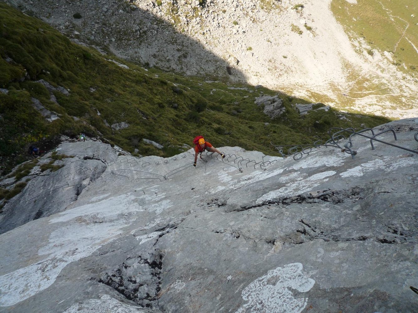 Die D/E Sektion am Ende des Steiges kann über einen gut versicherten Notausstieg umgangen werden. Schwierigkeit dann D-