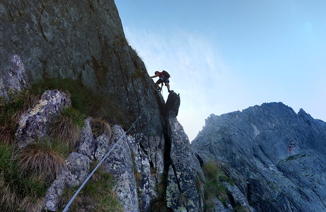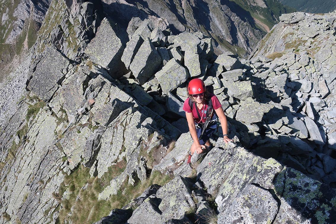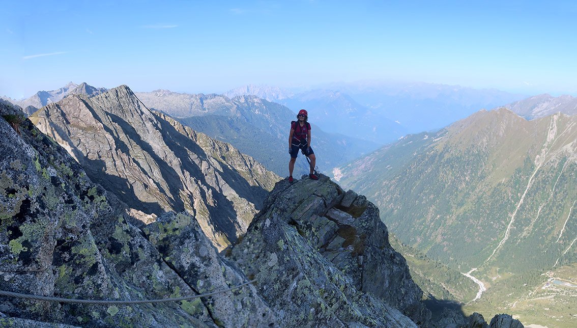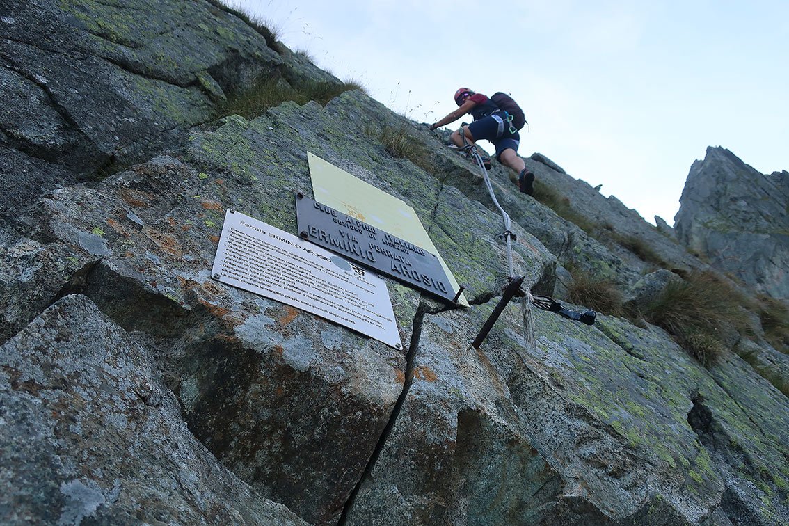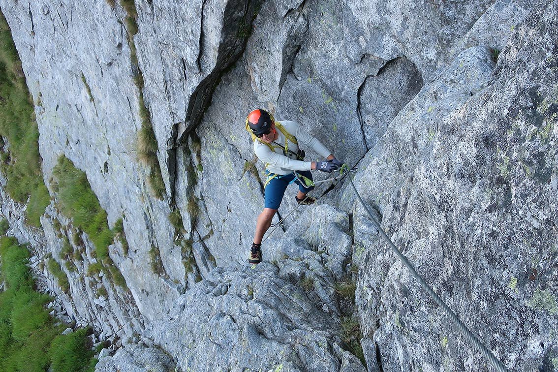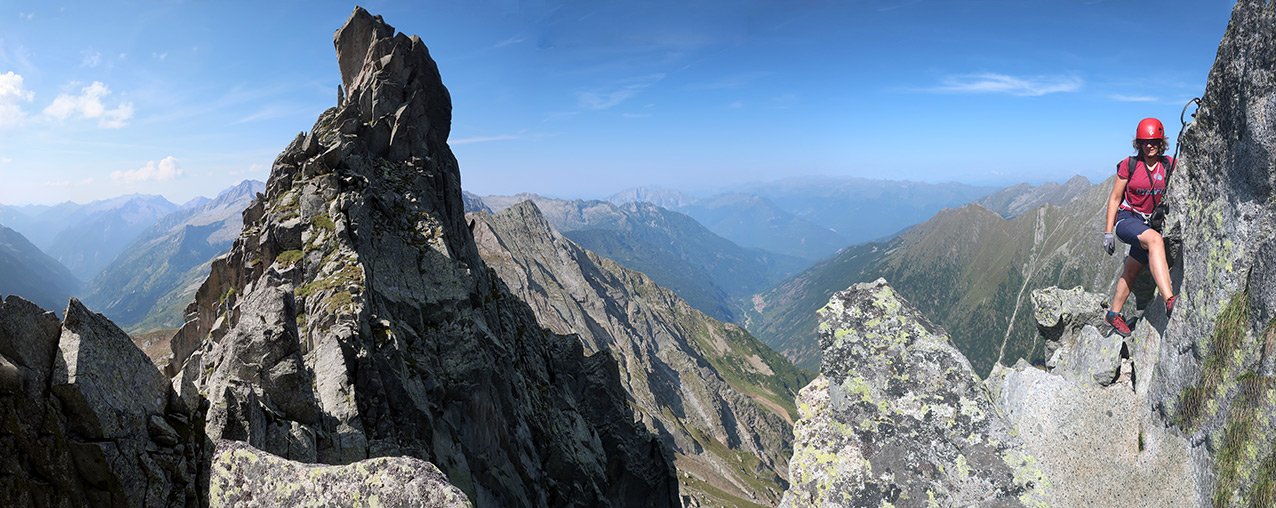 Die Ferrata Erminio Arosio ist ein historischer, alpiner Klettersteig am Corno di Grevo. Der Anstieg hat alles, was ein solides Bergabenteuer braucht - ein anspruchsvoller Klettersteig, ein fast 3000 m hoher Berggipfel und das mitten im Adamello-Gebirge. Der kühn angelegte Grat-Klettersteig ist mit nur ganz wenigen Trittklammern ausgestattet, wer sich ohne die Füße auf den kleinen Leistentritten einzusetzen nur am Stahlseil rauf zieht, wird an seine Grenzen kommen. Erreicht man den Gipfel, hat man einen fantastischen Ausblick auf die bekannten Eisriesen des Adamello - ein toller, langer Gratklettersteig der Extraklasse.